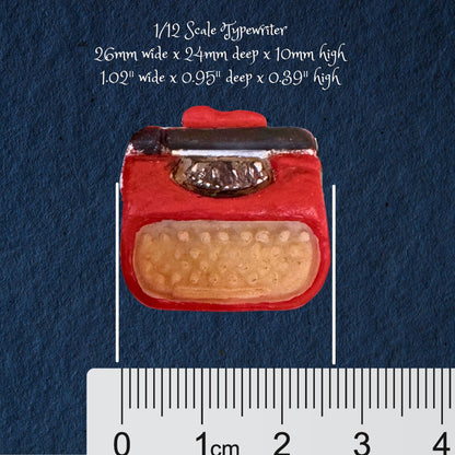Add vintage charm to your dollhouse or miniature scene with this handmade 1:12 scale clay typewriter. Expertly crafted from polymer clay, this tiny typewriter measures 26mm wide x 24mm deep x 10mm high, making it a perfect fit for standard 1:12 scale dollhouse desks, offices, or writer’s nooks.