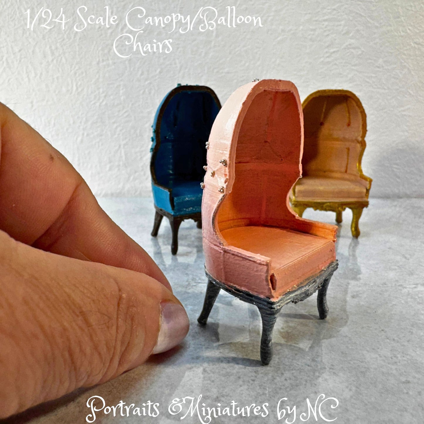 Dieser Ballon/Canopy Chair ist mit PLA bedruckt und in verschiedenen Ausführungen im Maßstab 1/12 und 1/24 erhältlich.