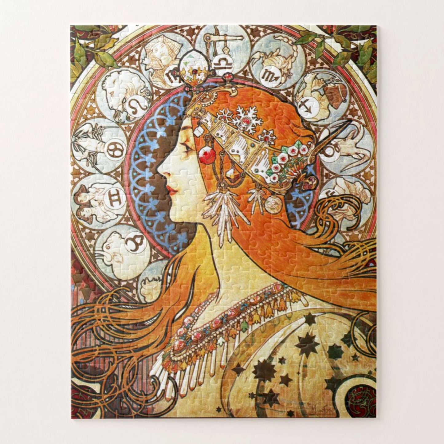 Alphonse Mucha La Plume Sternzeichen Jugendstil – traditionelles dickes Puzzle für Erwachsene, 30 bis 1000 Teile