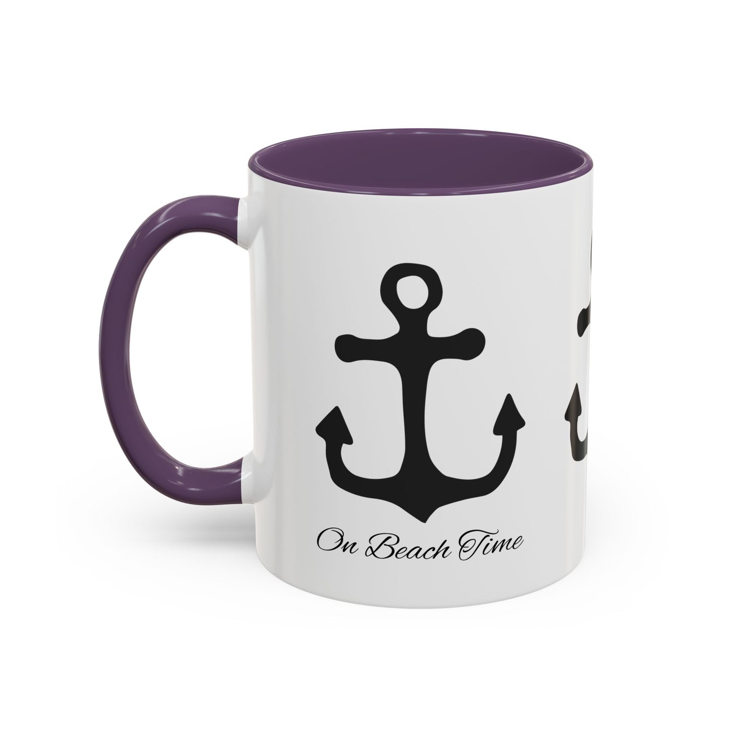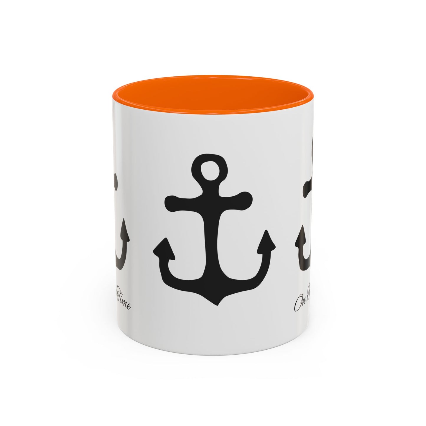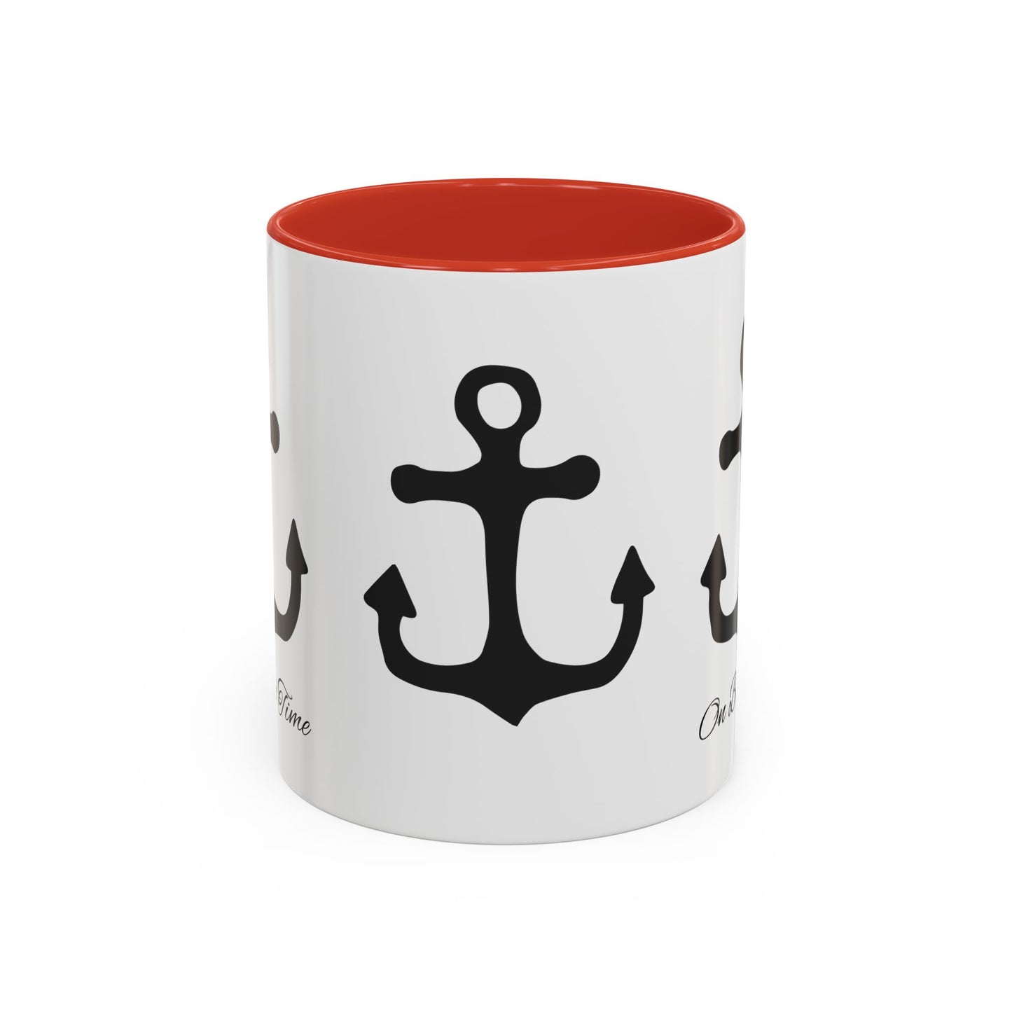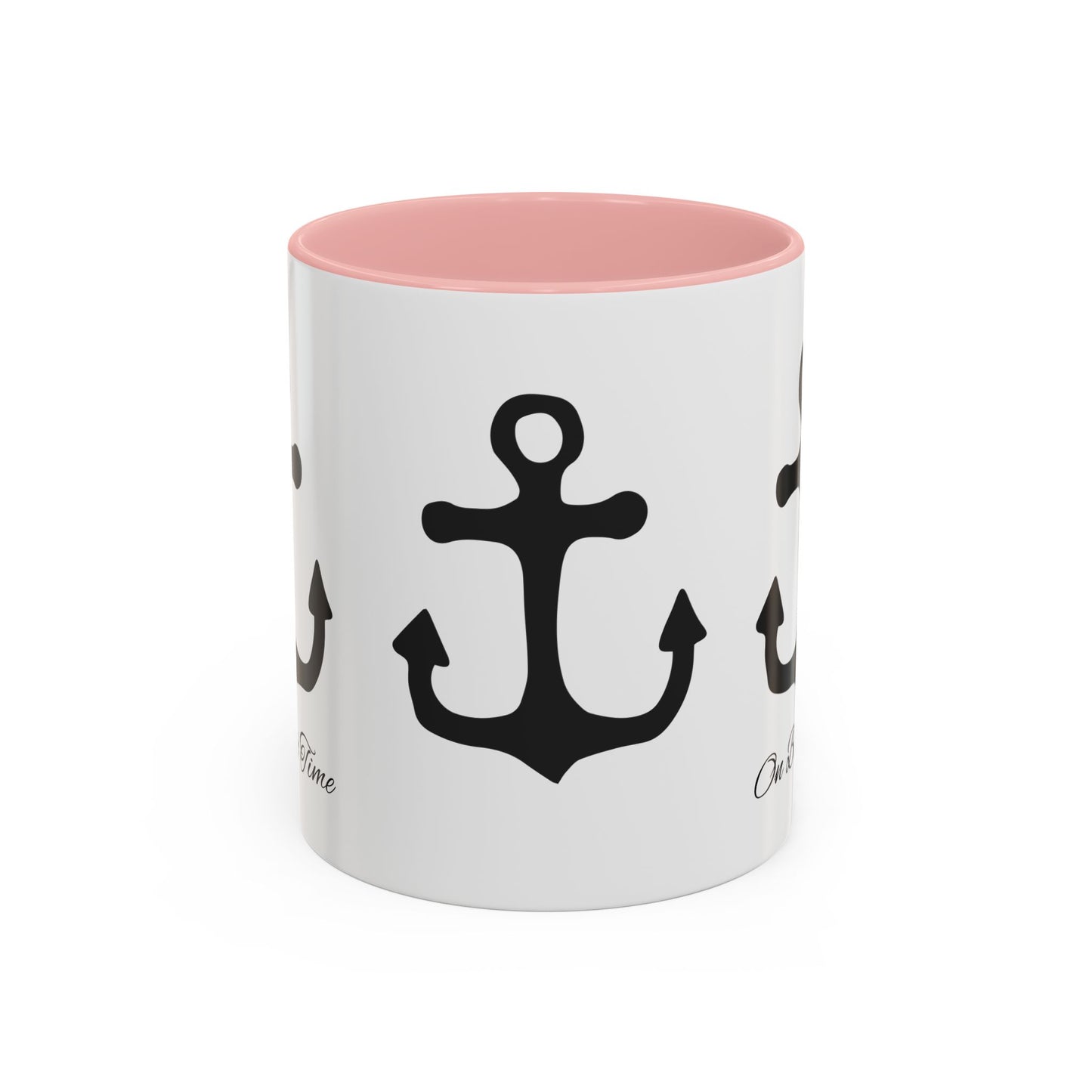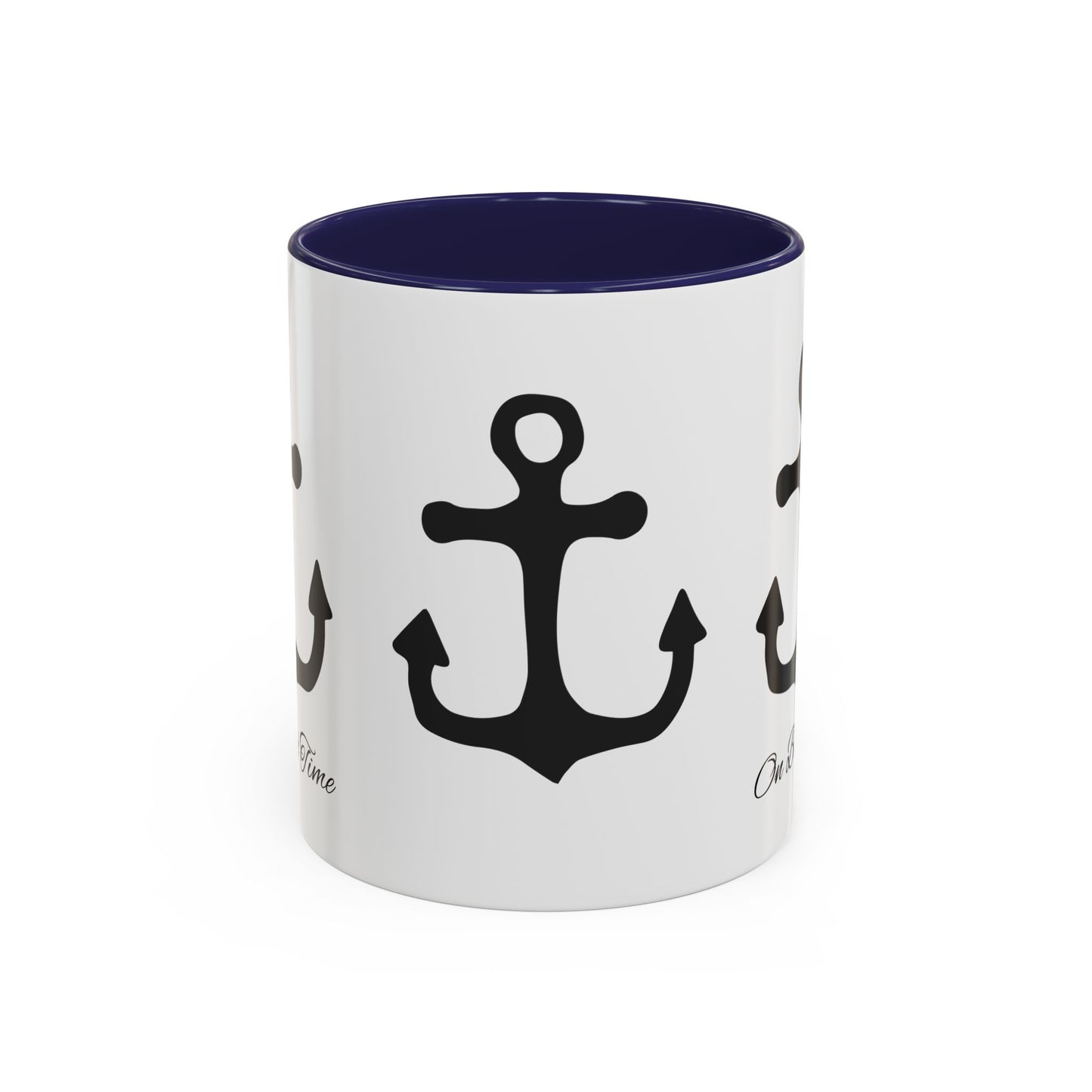 Nautical Anchor Coffee Mug, On Beach Time Coffee Cup, Boat Lover Gift, Sailor Mug, Summer Drinkware, Ocean Theme Mug