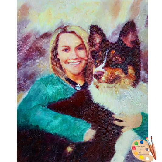 People With Pets Portrait - Woman with Australian Shepherd Dog - Oil Portrait