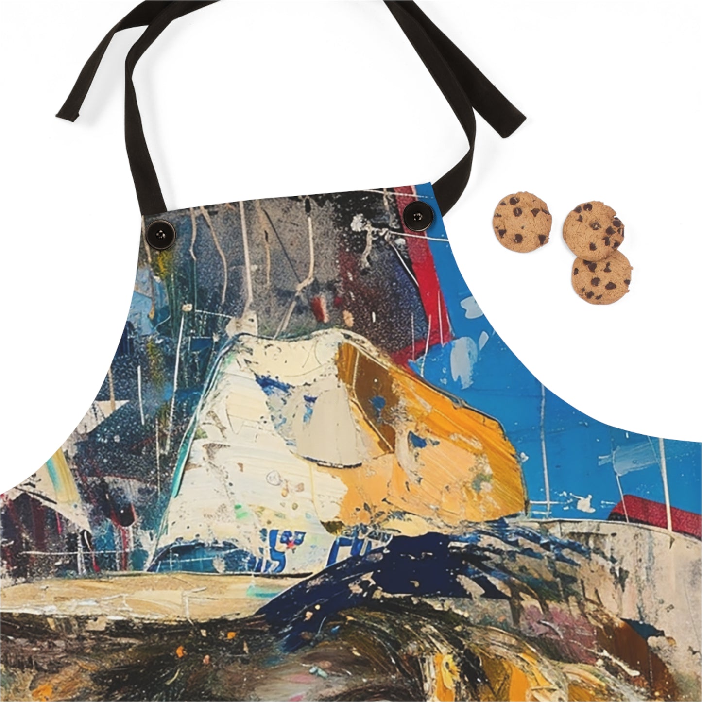 Made of 100% poly twill, this apron features a black neck strap and matching waist strap with working button details. The perfect gift for any chef!