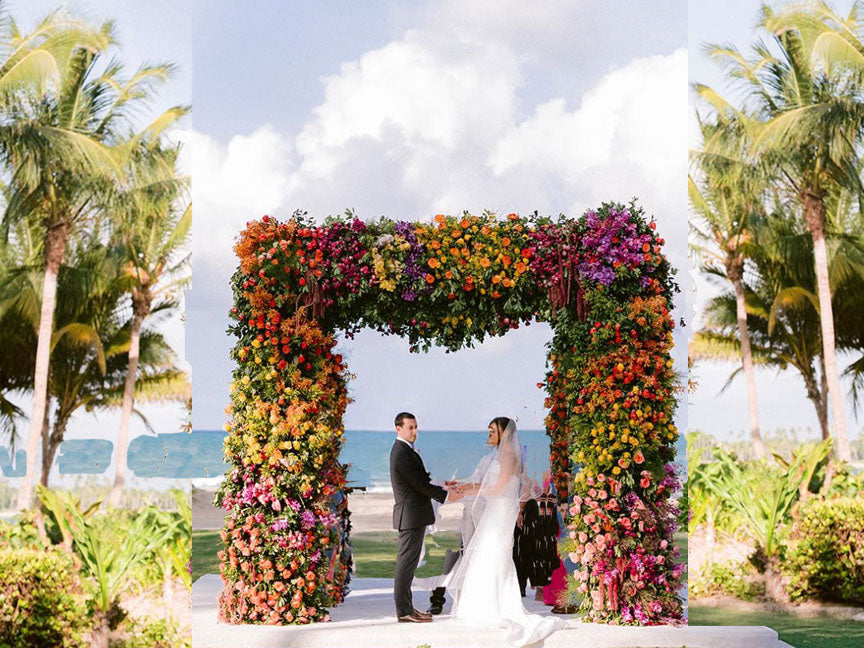 - Beautiful Floral Arch: A stunning, three-dimensional floral arch, abundant with tiny, lifelike blossoms hand-crafted in clay and greenery, frames the couple, adding a touch of natural elegance and serving as the ceremony's centerpiece .