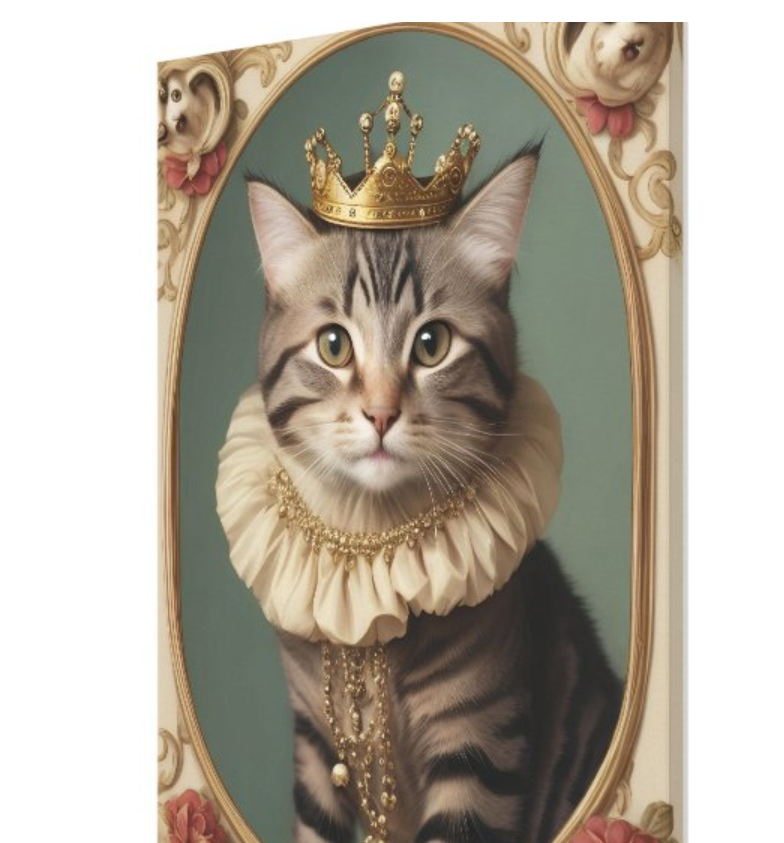 This Princess Paws Canvas Print features an adorable depiction of a kitten perfect for any home. The canvas is printed using state-of-the-art technology for superior quality and clarity, ensuring that your decor stands out. Enjoy this elegant portrayal of a princess kitten today.