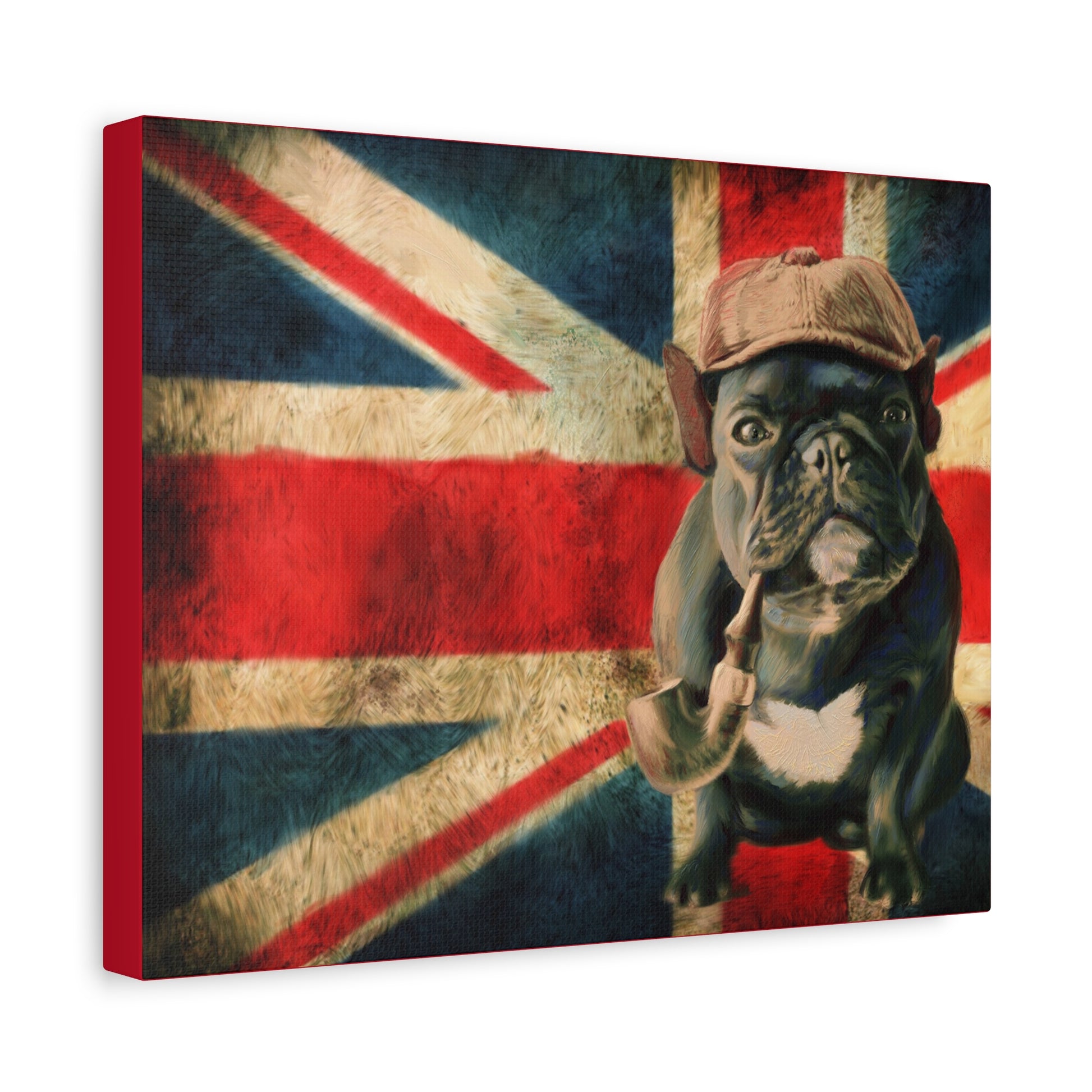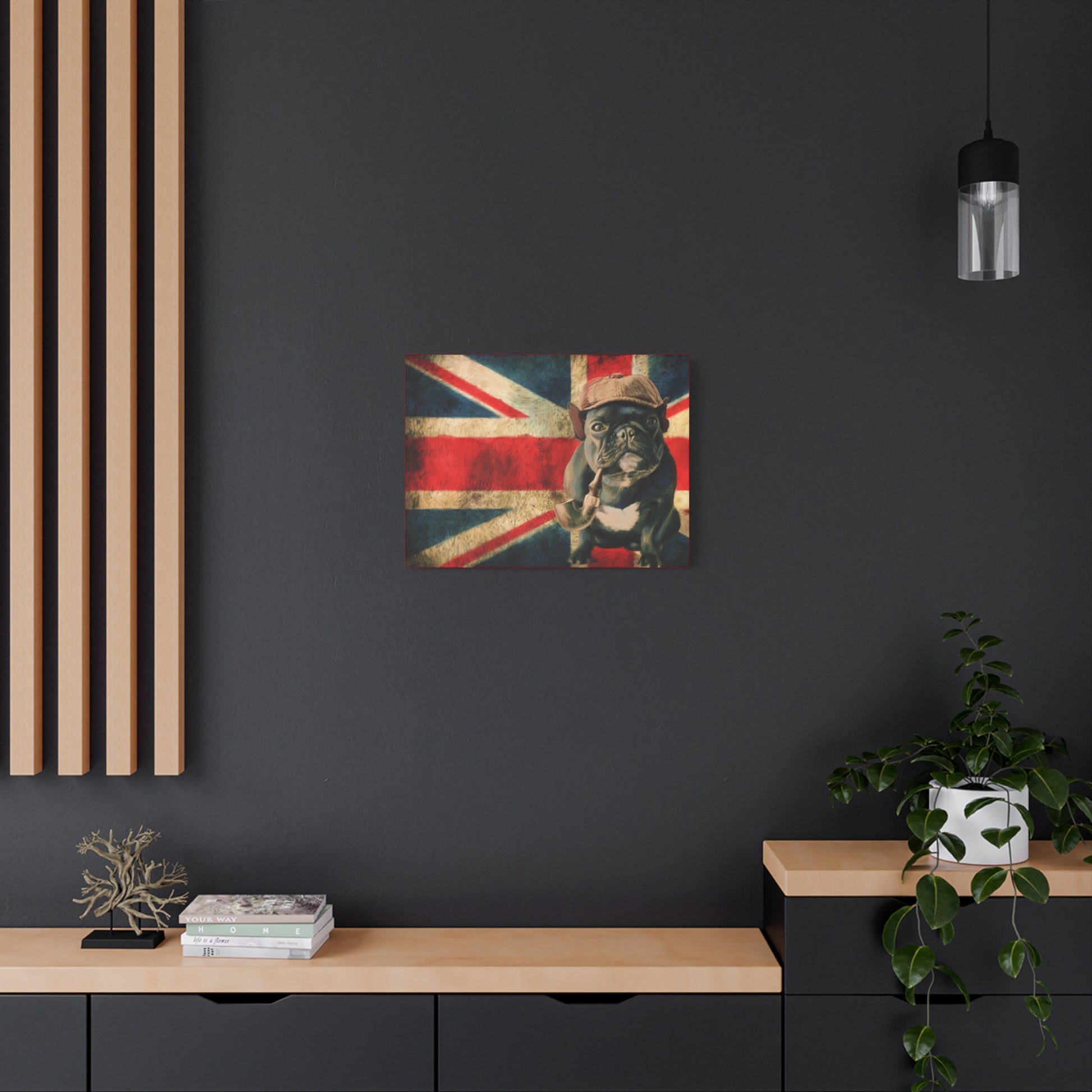 British Bulldog Canvas Wall Art – Vintage Union Jack with Smoking Frenchie
