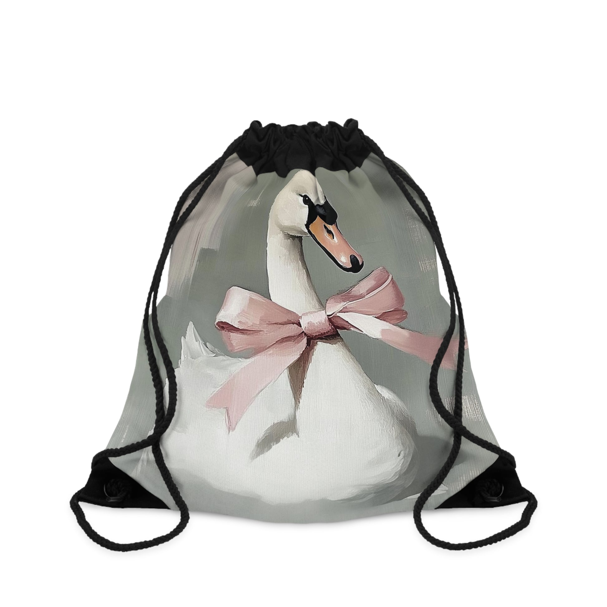 Elegant Swan Drawstring Bag, Perfect for Gifts, Gym, School, Travel, Unique Art Accessories