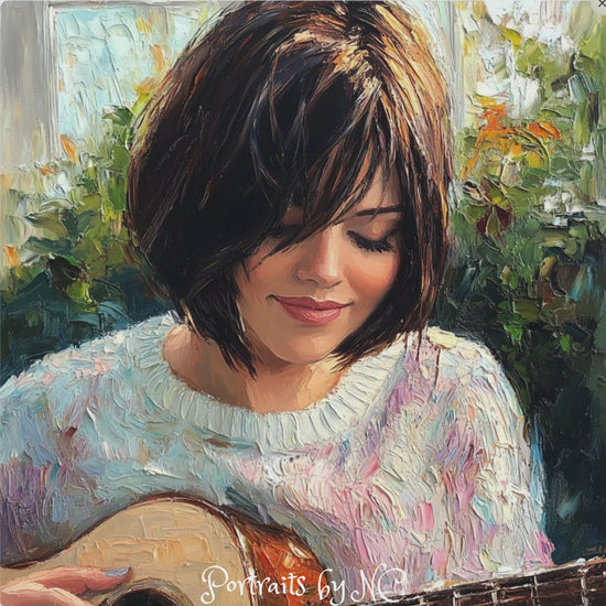 Portraits are available on Fine Art Paper, Museum Wrap Canvas (0.75"), or Gallery Wrap Canvas (1.25")—with sides finished and hanging hardware attached, ready for immediate display. Sizes range from 8"x8" to 30"x40", and custom dimensions are available upon request. Gallery Wrap Canvas is available at a slightly higher cost; pricing will be quoted upon request. You can choose from digital, or oil paint finishes.