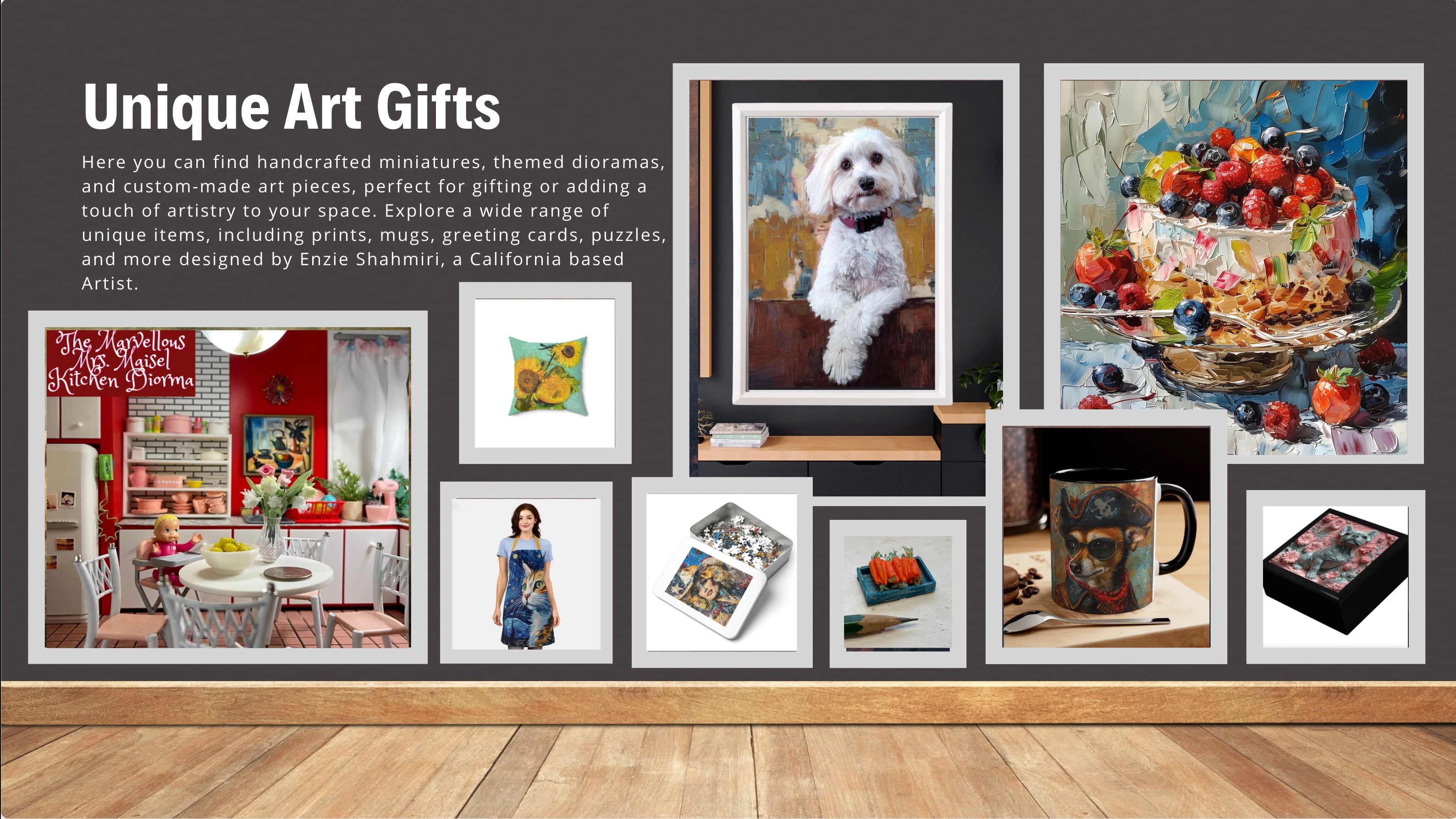 Gifts ideas for those who love miniature dollhouses and custom made dioramas,