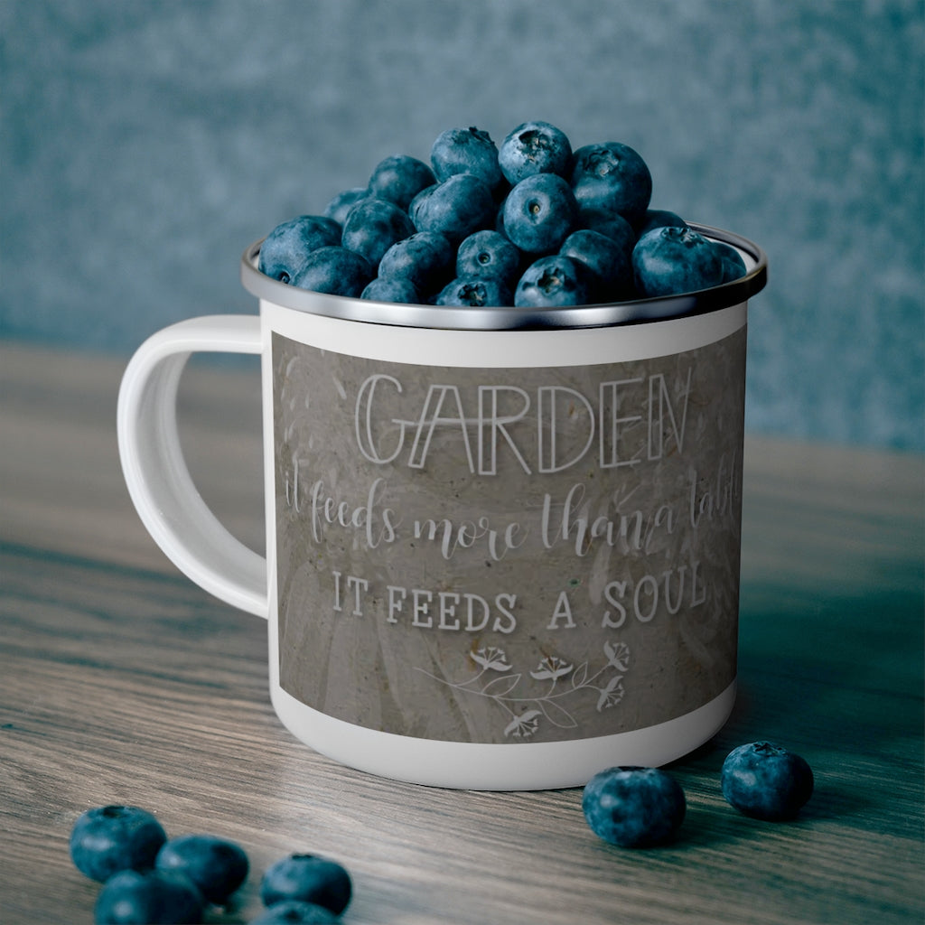 Enamel Camping Mug with Gardening Quote - Gifts for Gardeners