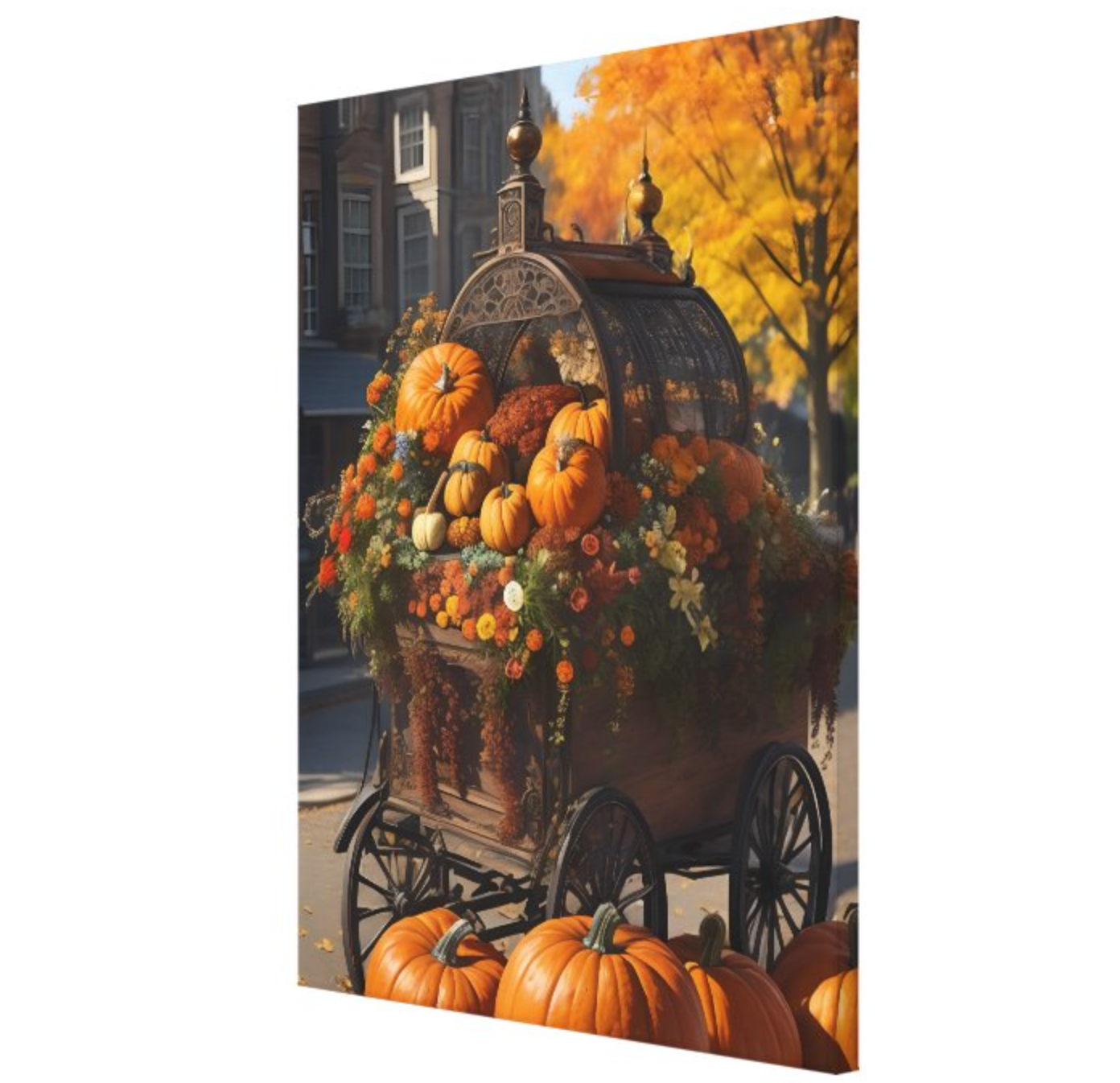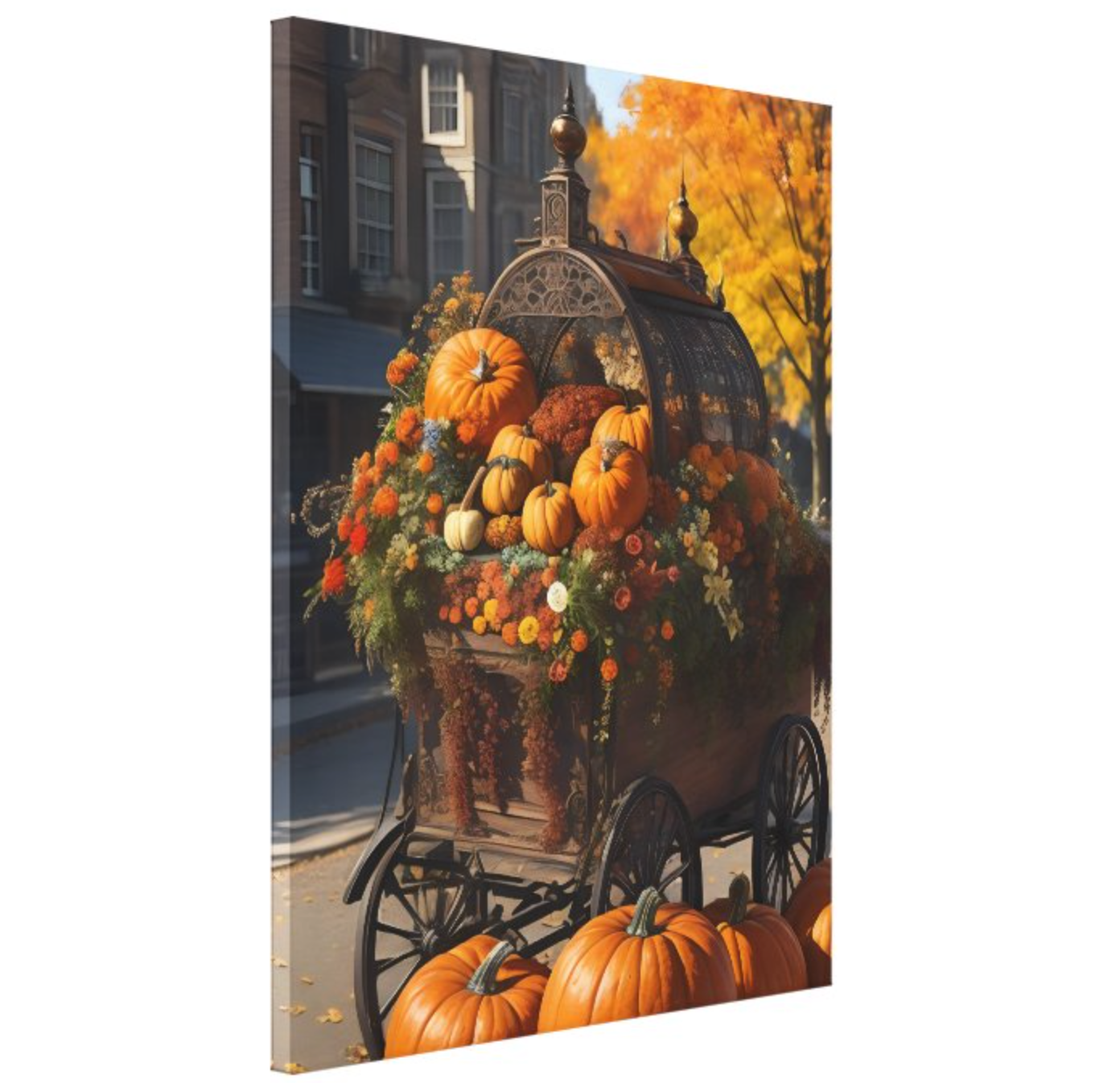 This Pumpkin Harvest Elegance canvas print is a true celebration of the fall season. Boasting a vibrant color palette and a detailed design featuring a plethora of pumpkins and flowers, this special canvas print will easily become the centerpiece of any room. Quality is key, so this canvas print is available in multiple sizes and canvas thicknesses. Enjoy the beauty of the harvest season with this iconic canvas print.