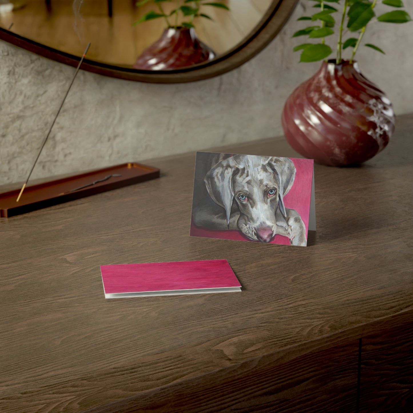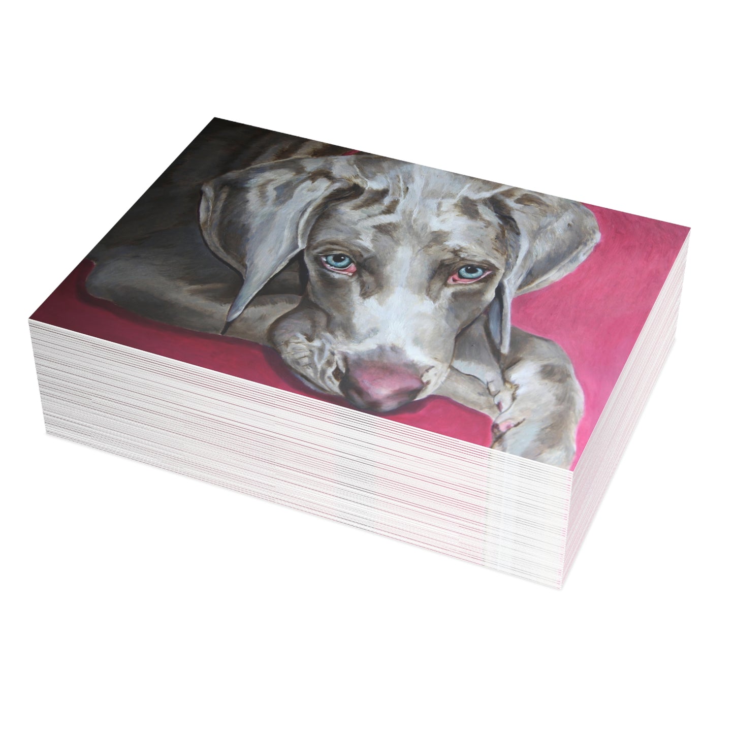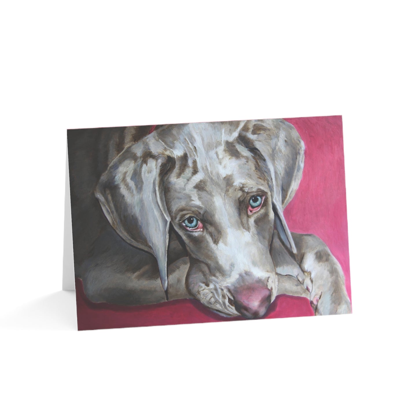 Send a beautiful Weimaraner greeting card to a dog lover. Available in matte or glossy these greeting cards are available in 4 sizes, and 2 finishes: Matte or Glossy. Available in 1, 10, 30, and 50 pcs for you to find the best match for your needs. All cards come with envelopes.