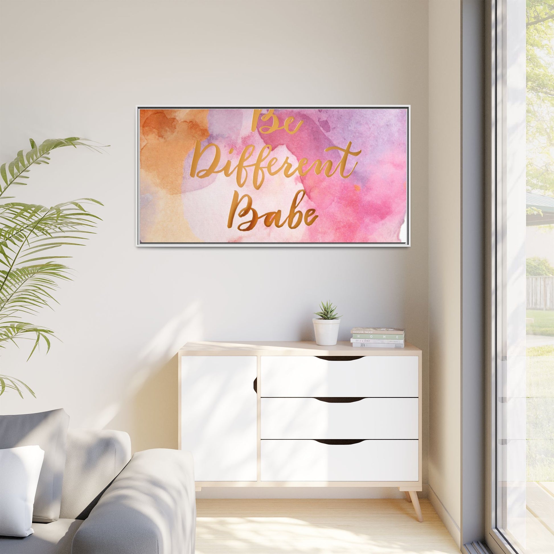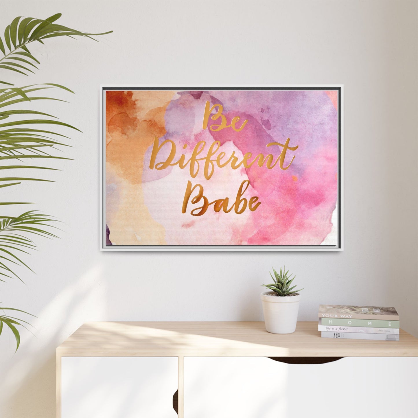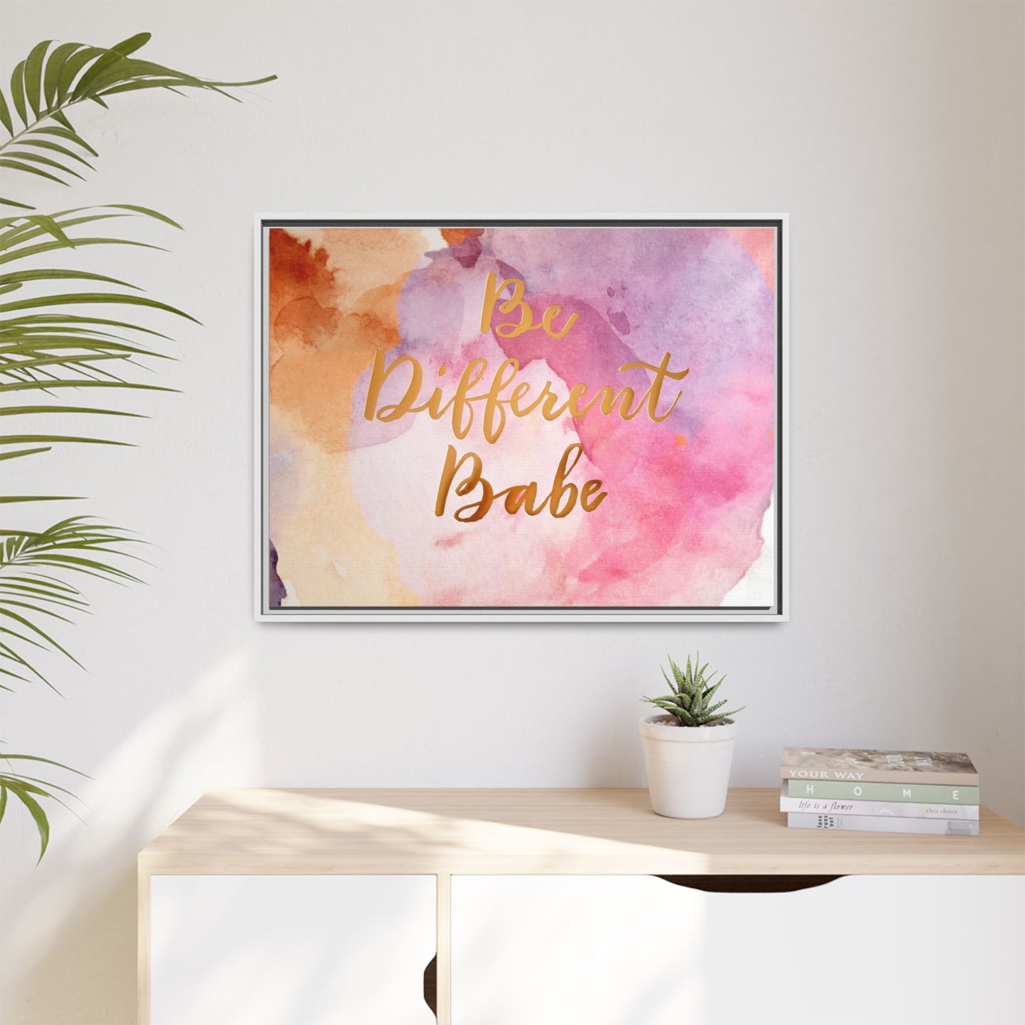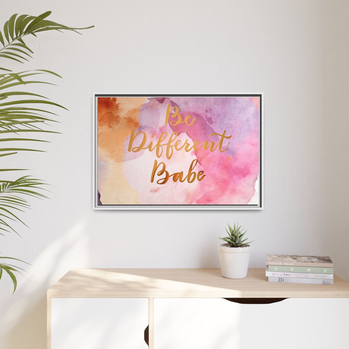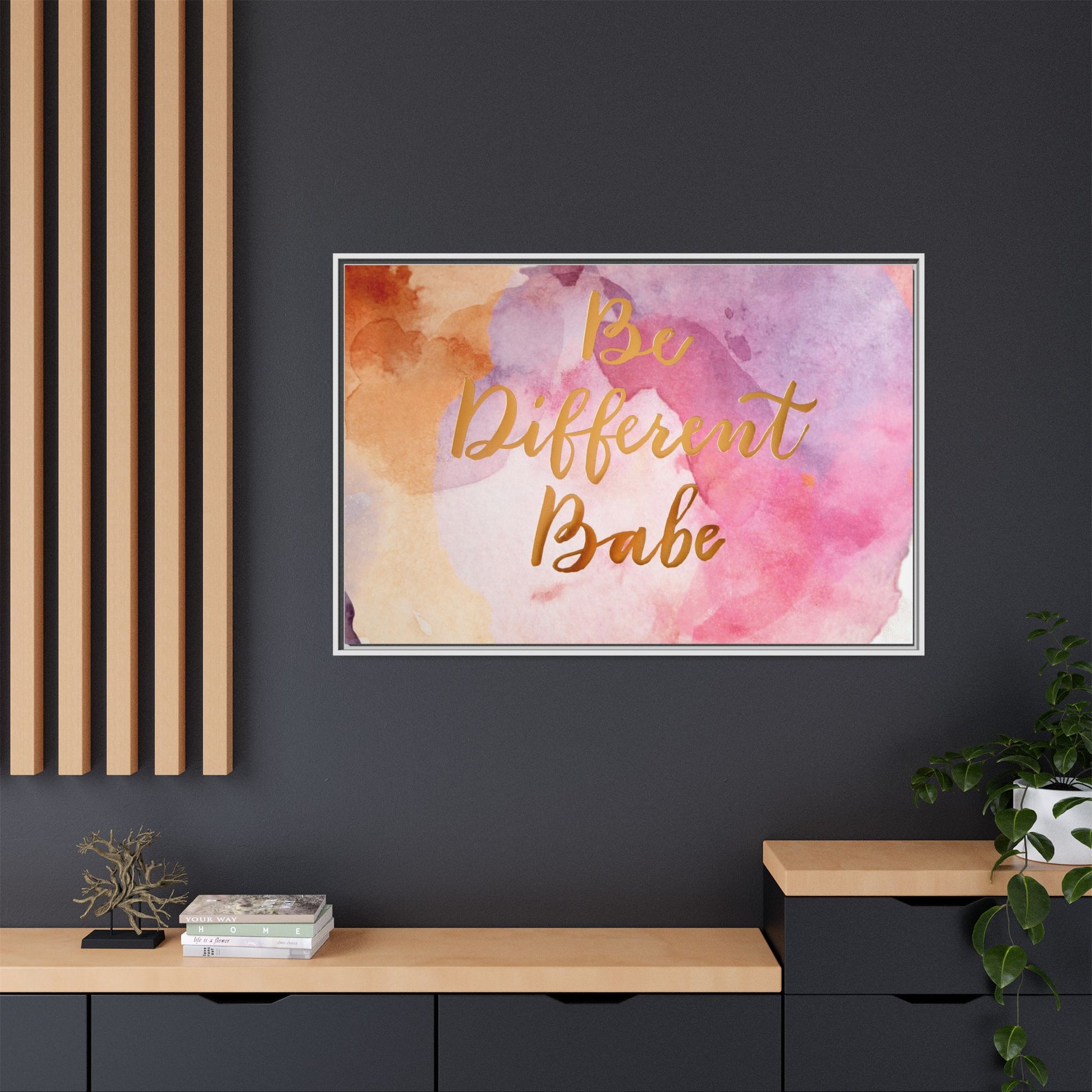 Framed Art Print - Be Different Babe, Inspirational Wall Decor, Unique Gift, Home Office Art, Colorful Canvas