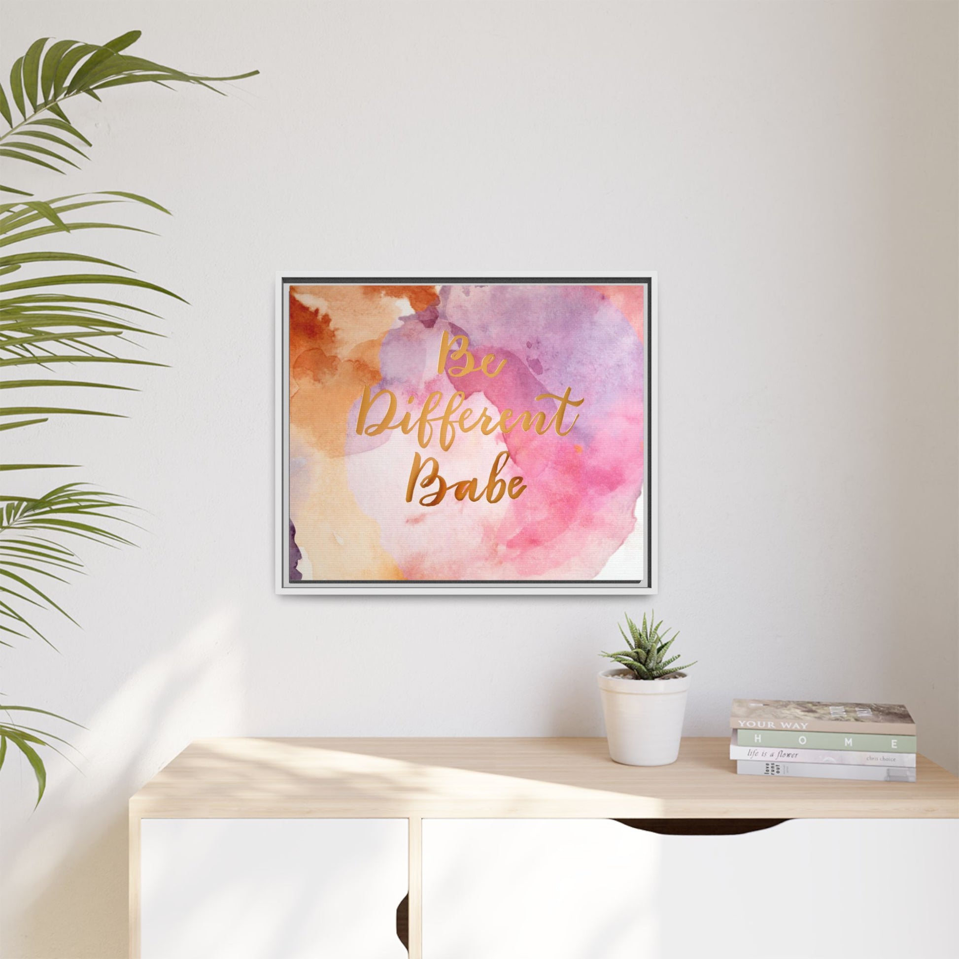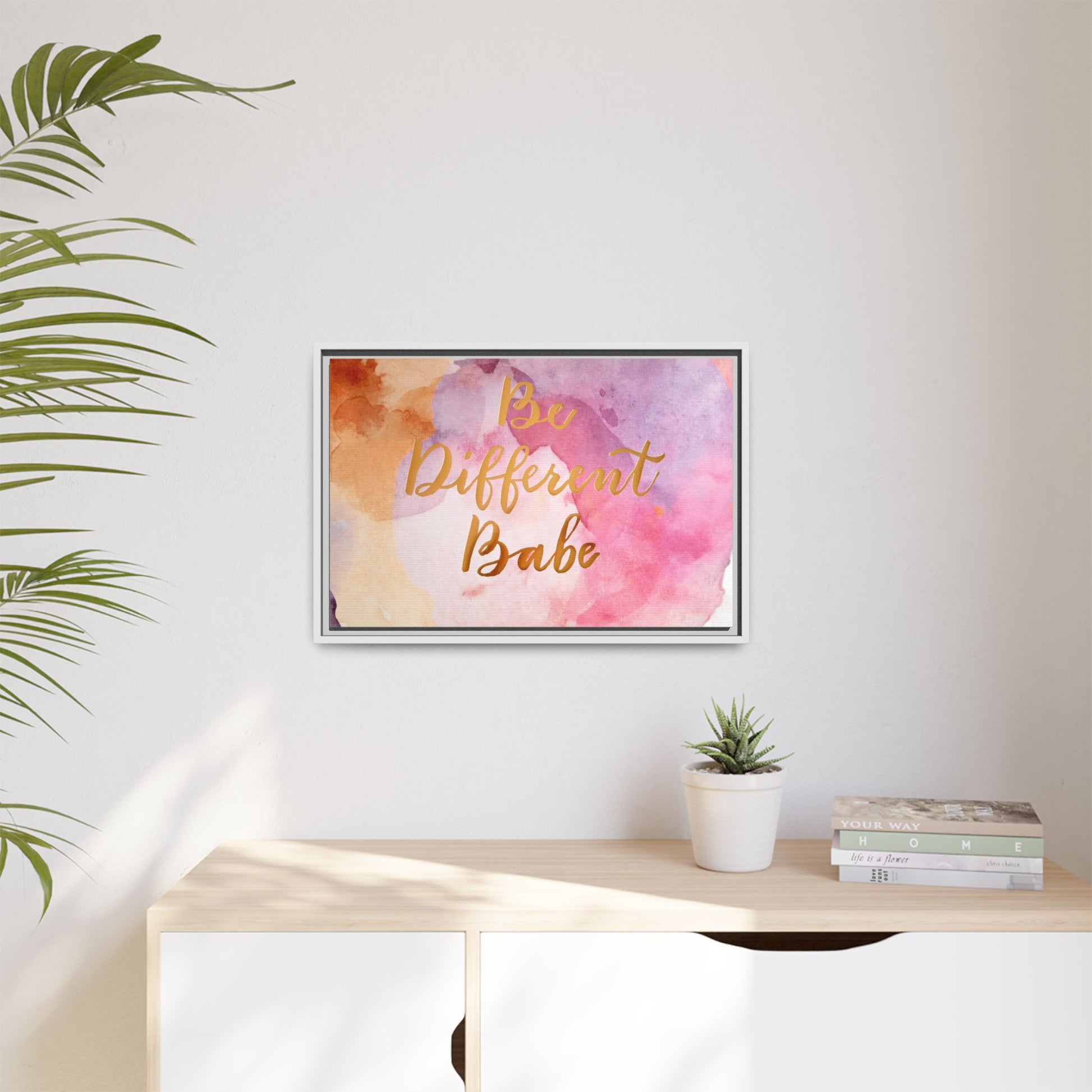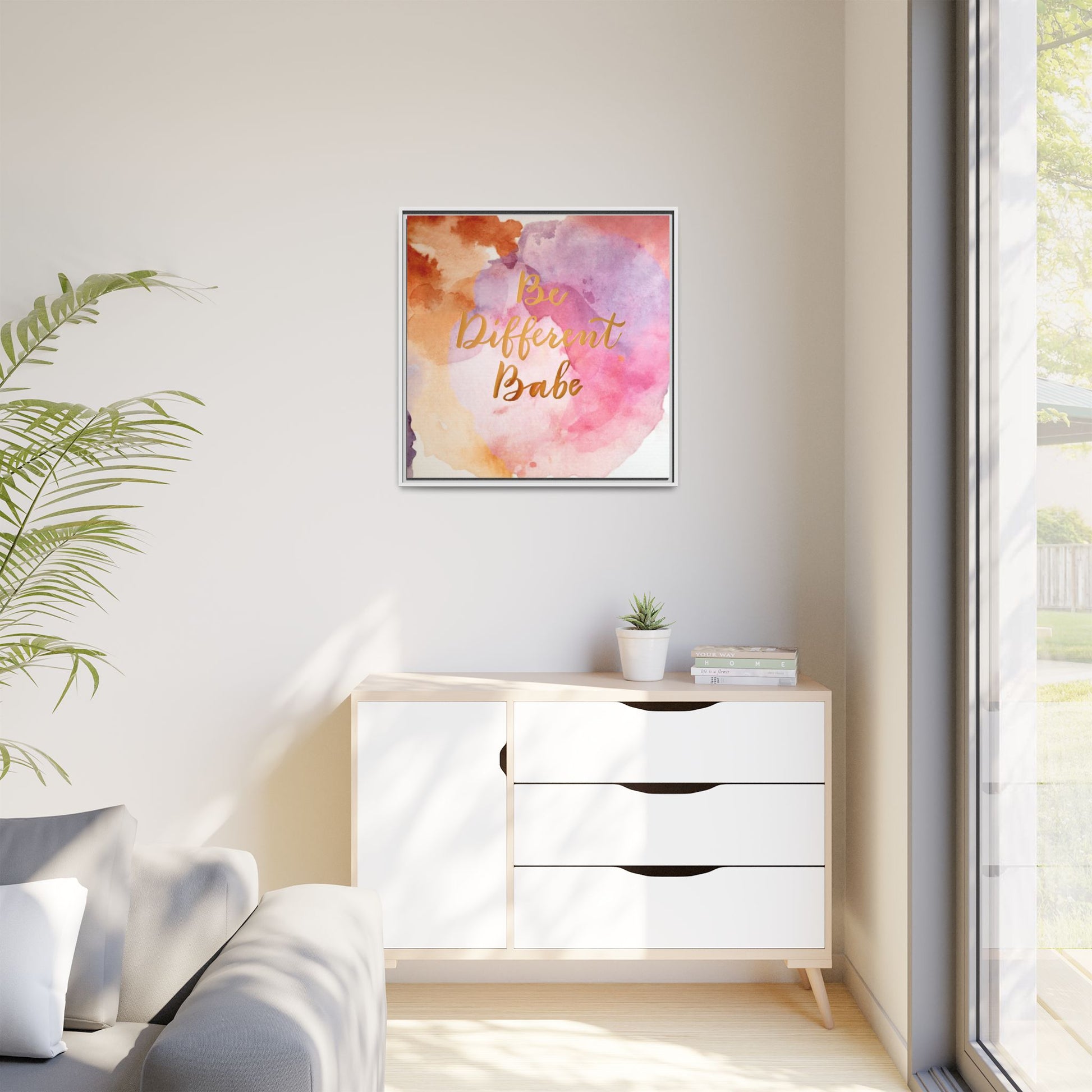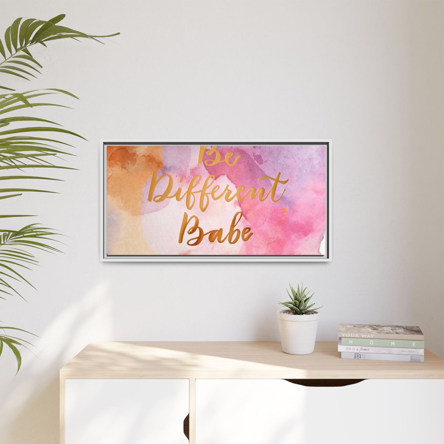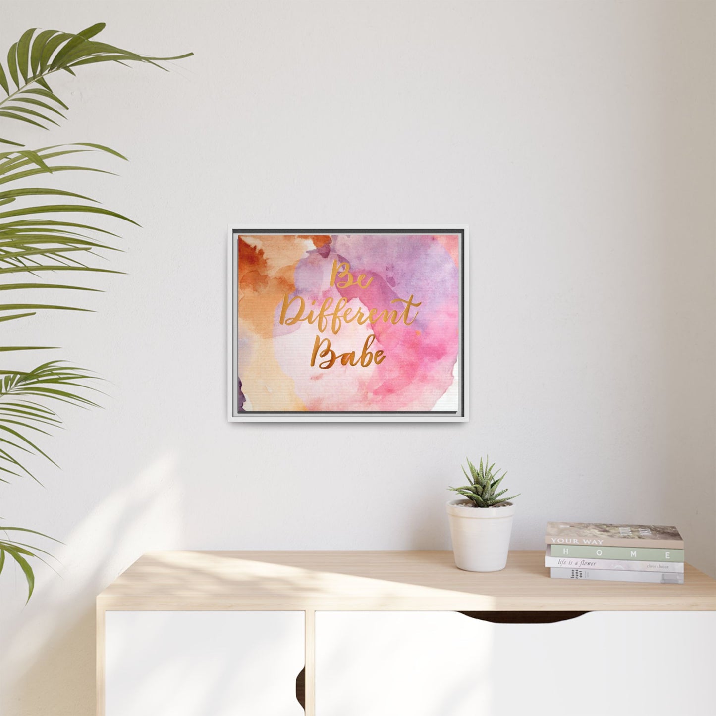 Framed Art Print - Be Different Babe, Inspirational Wall Decor, Unique Gift, Home Office Art, Colorful Canvas