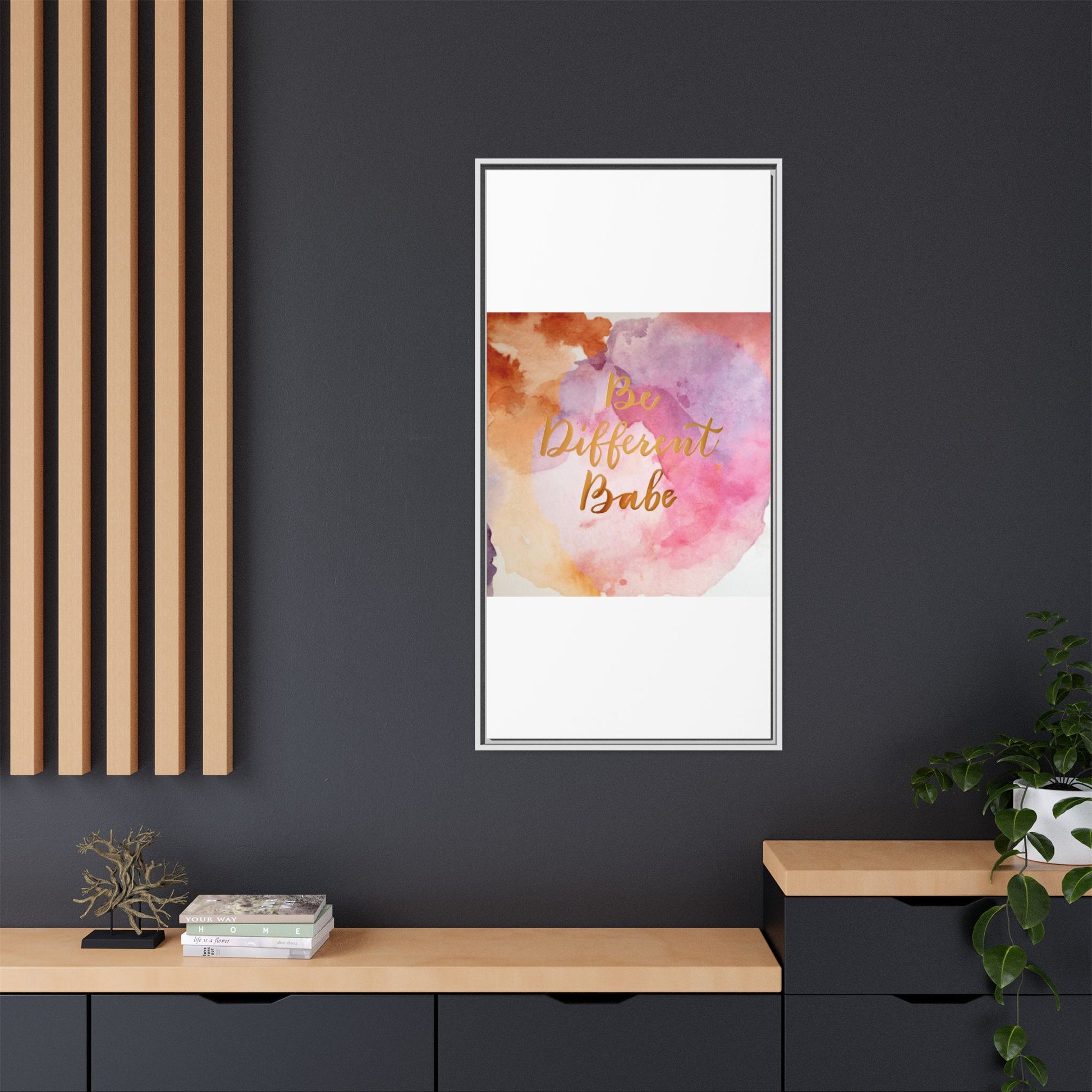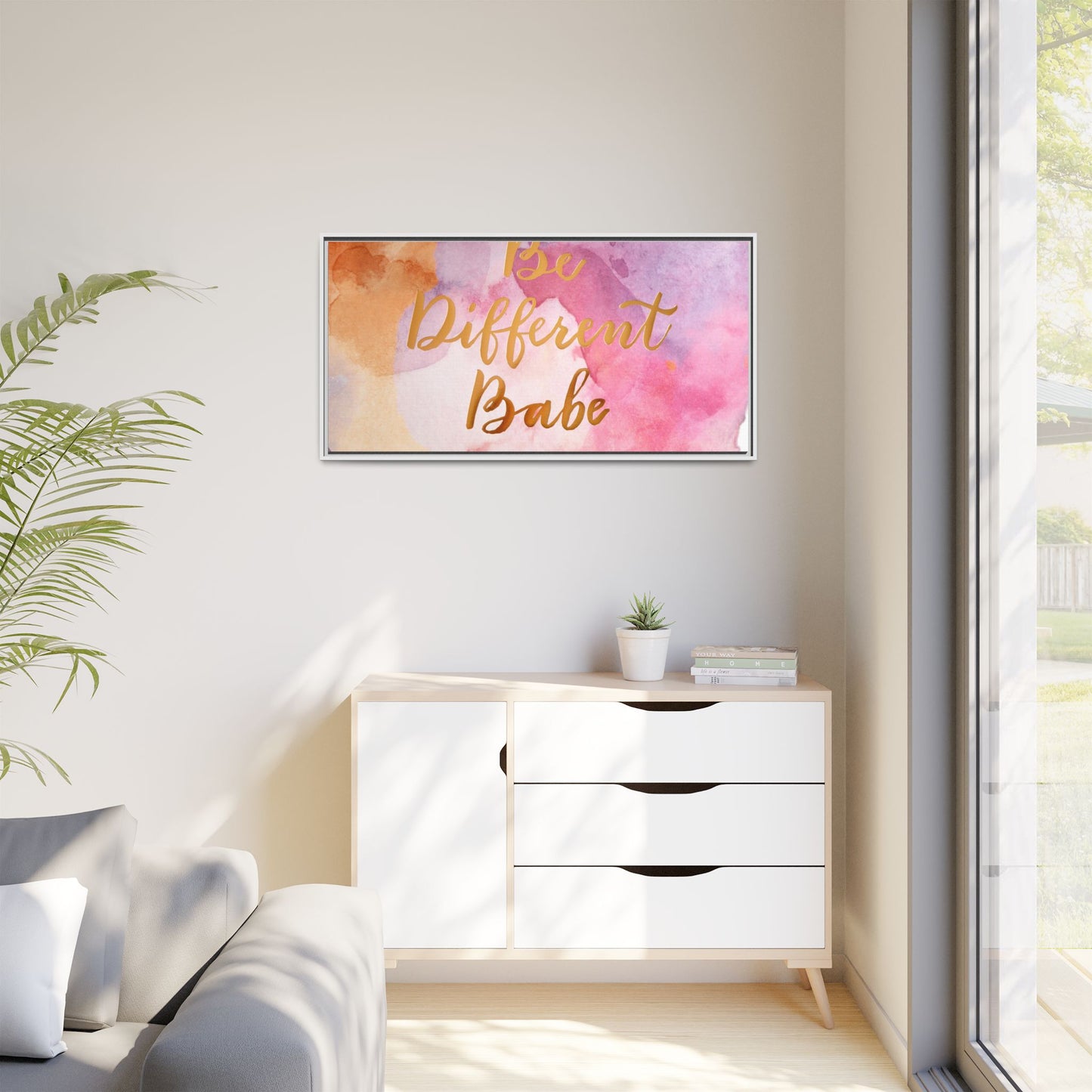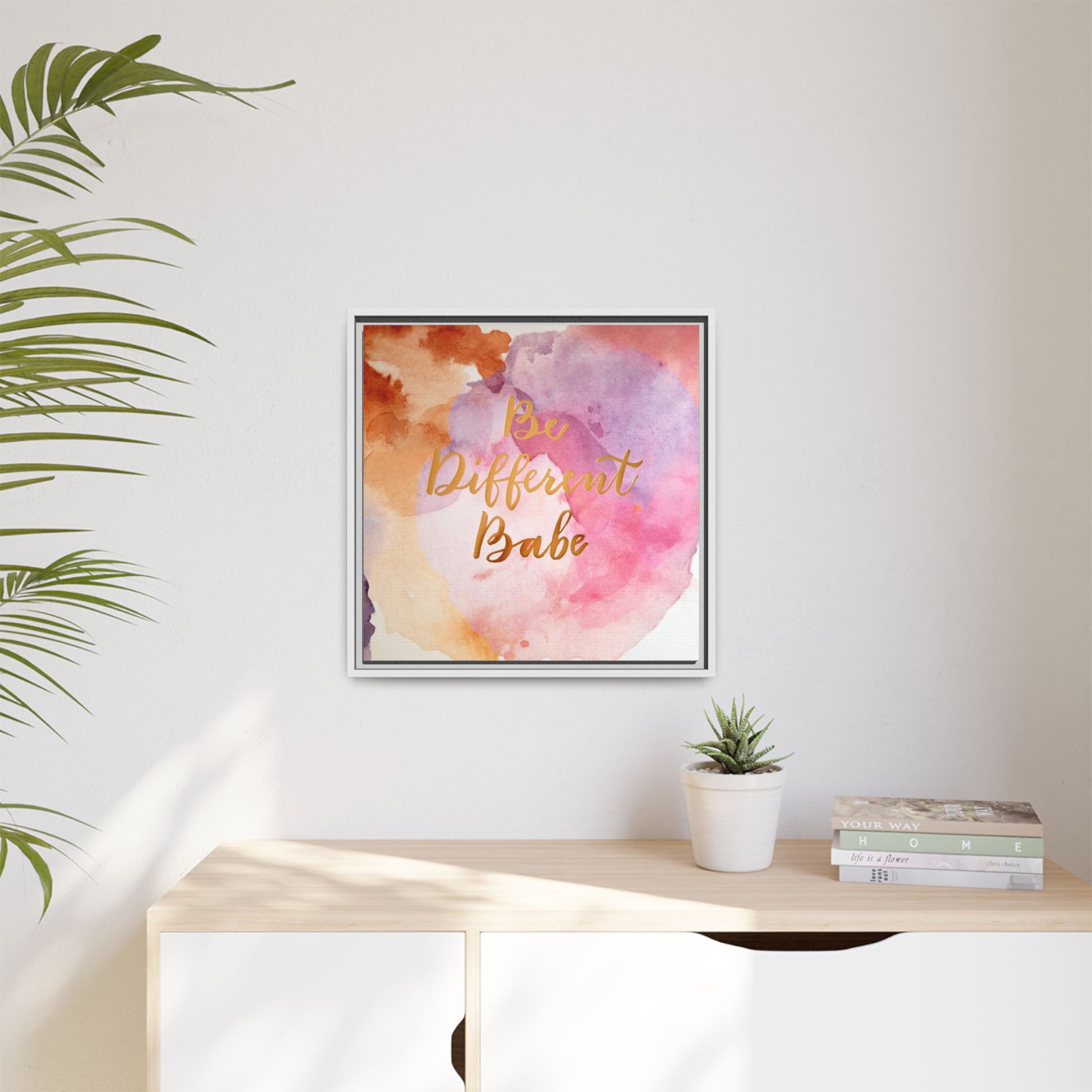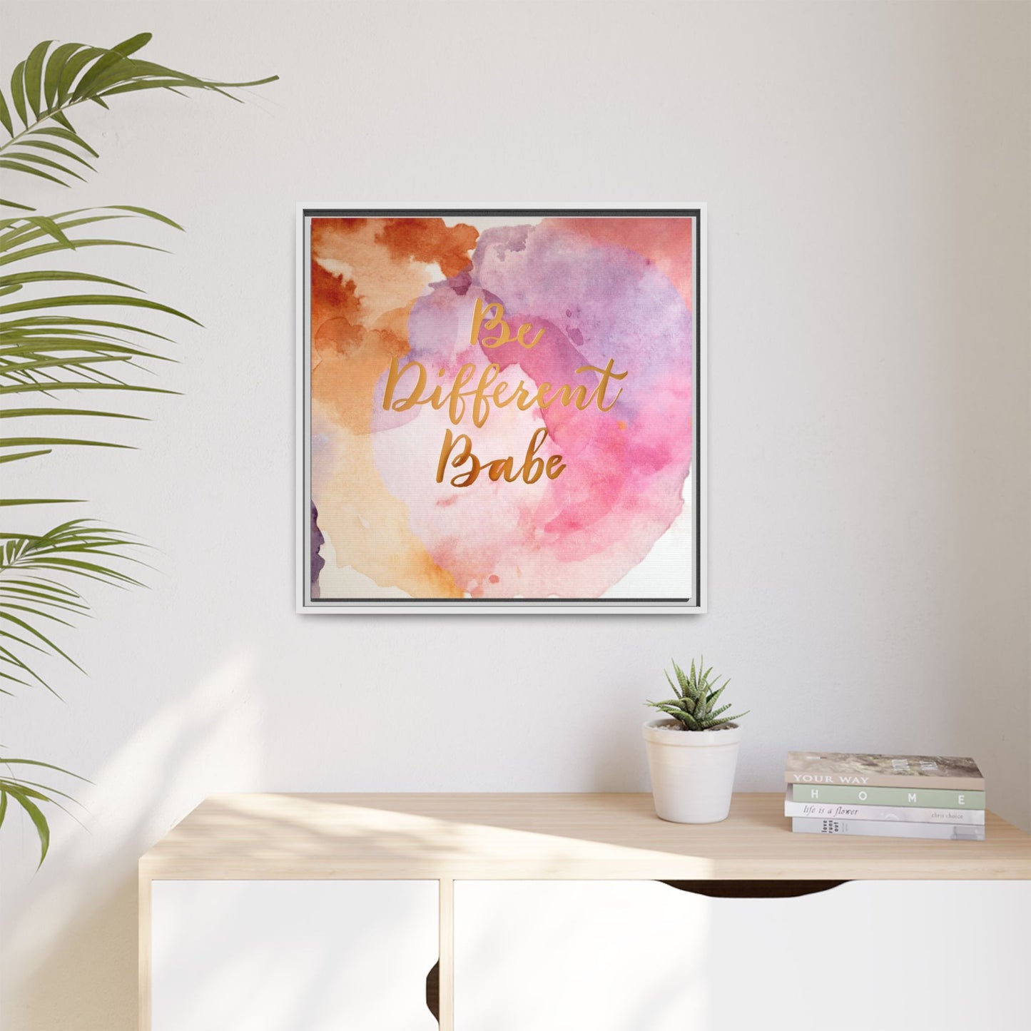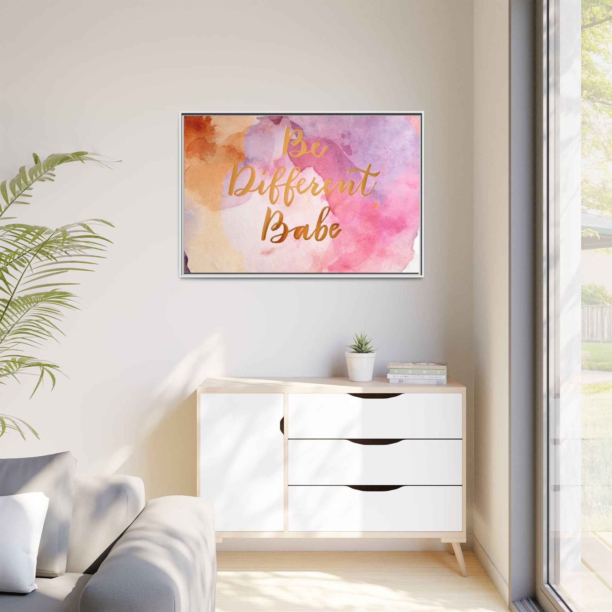 Framed Art Print - Be Different Babe, Inspirational Wall Decor, Unique Gift, Home Office Art, Colorful Canvas
