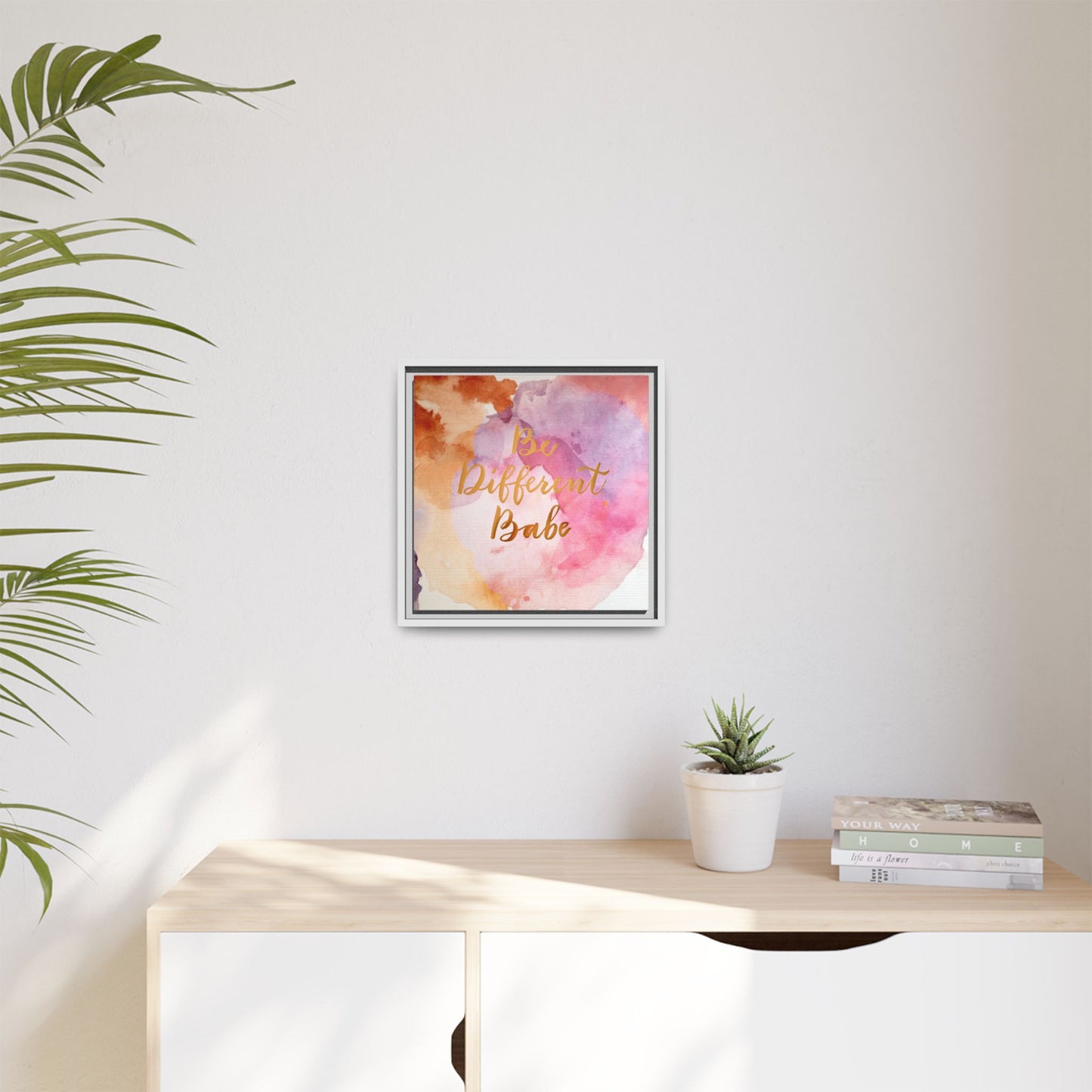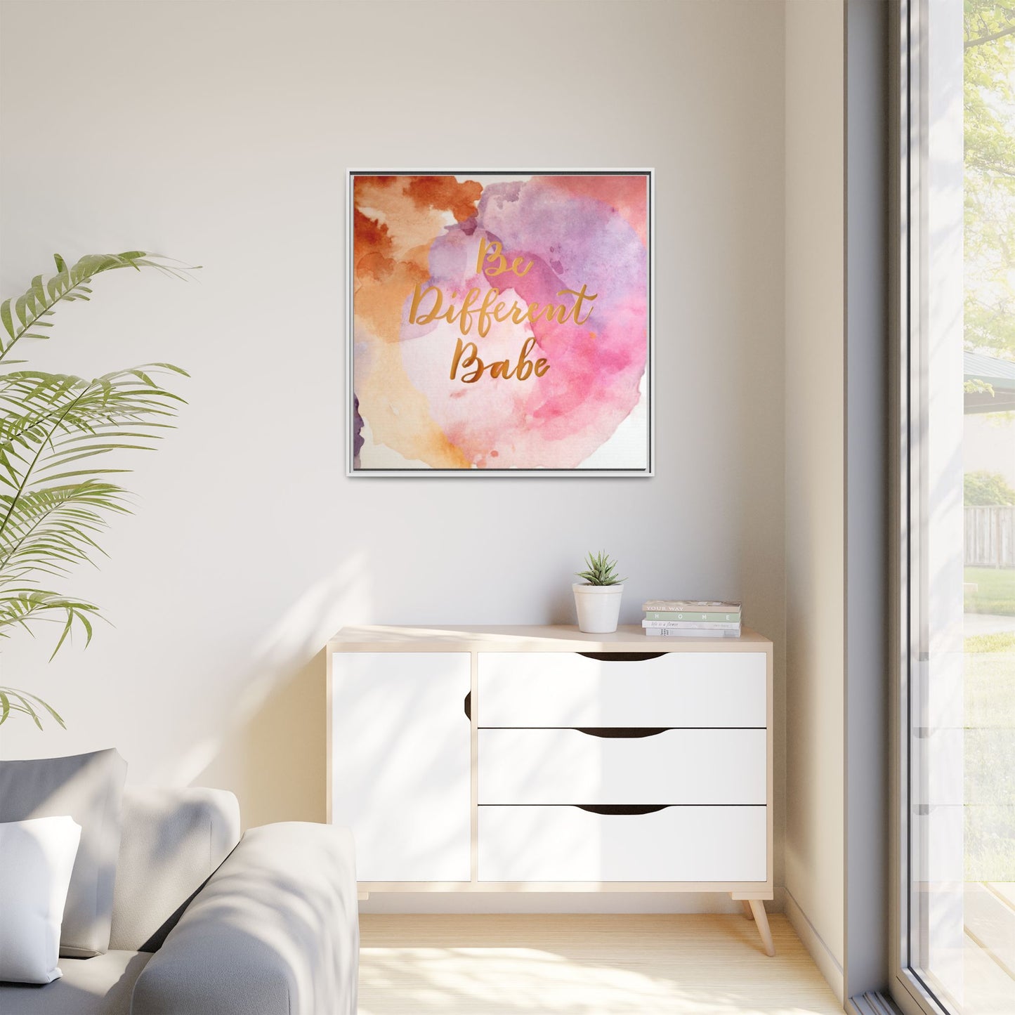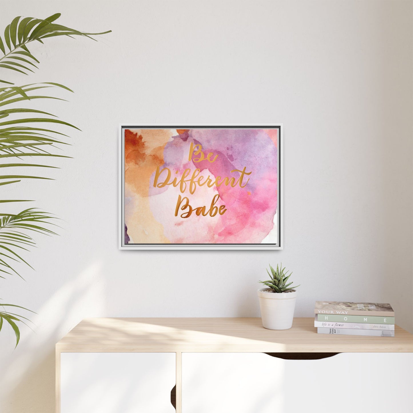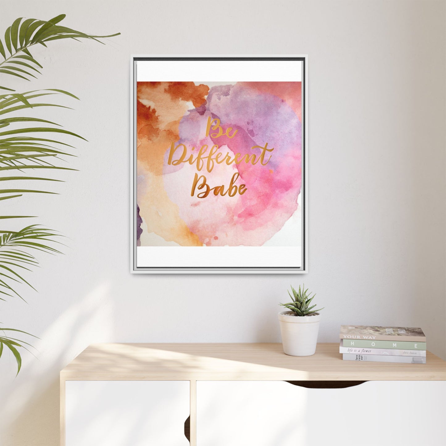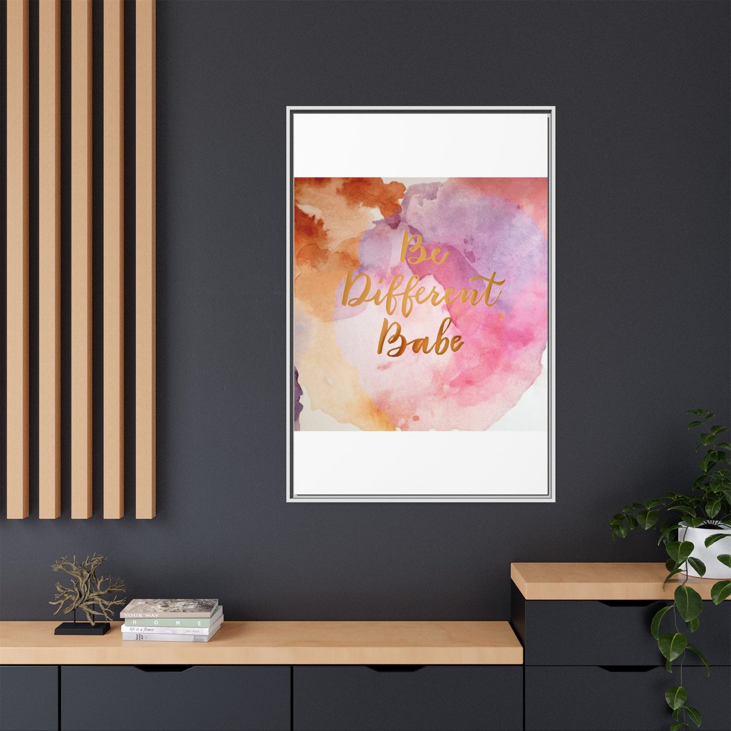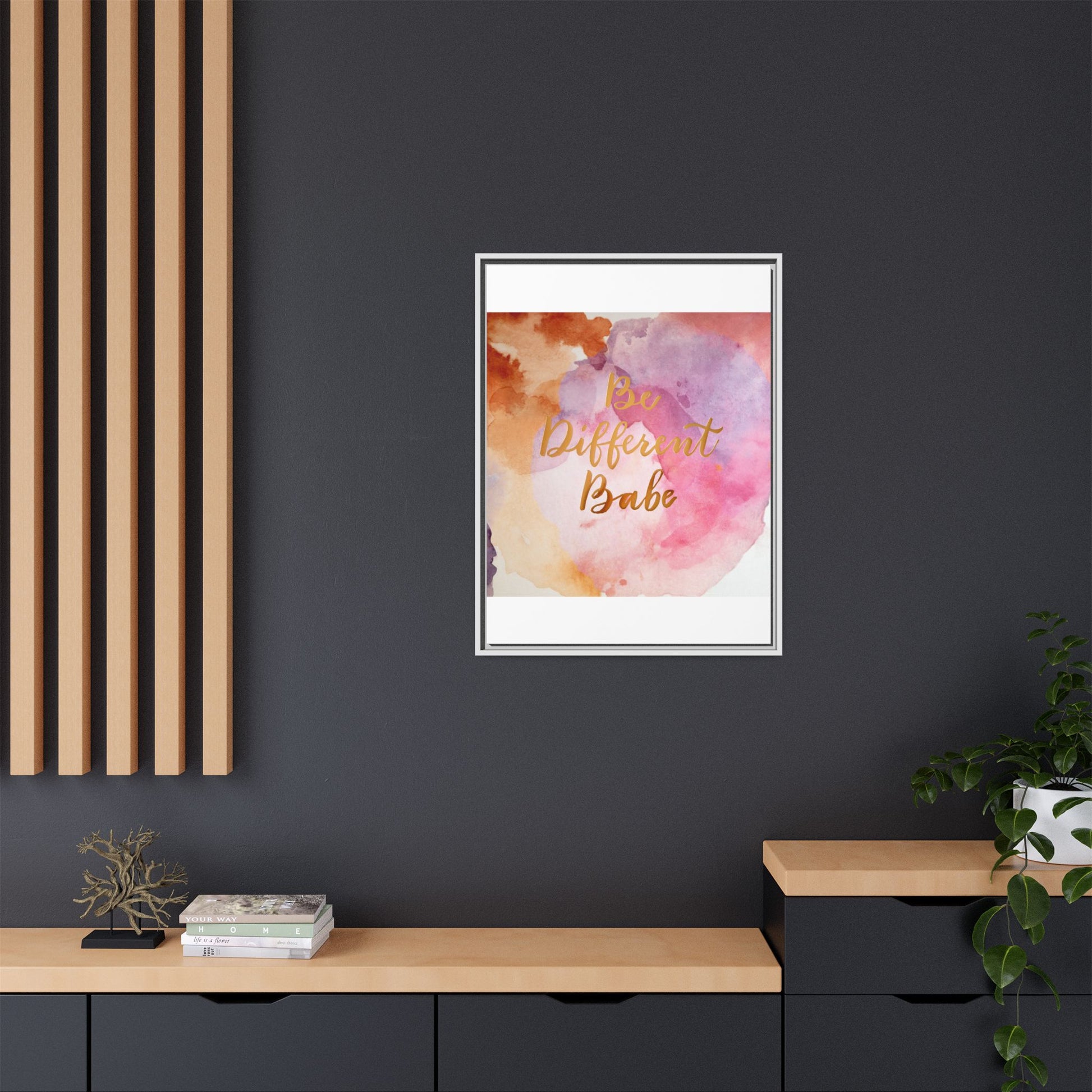 Framed Art Print - Be Different Babe, Inspirational Wall Decor, Unique Gift, Home Office Art, Colorful Canvas