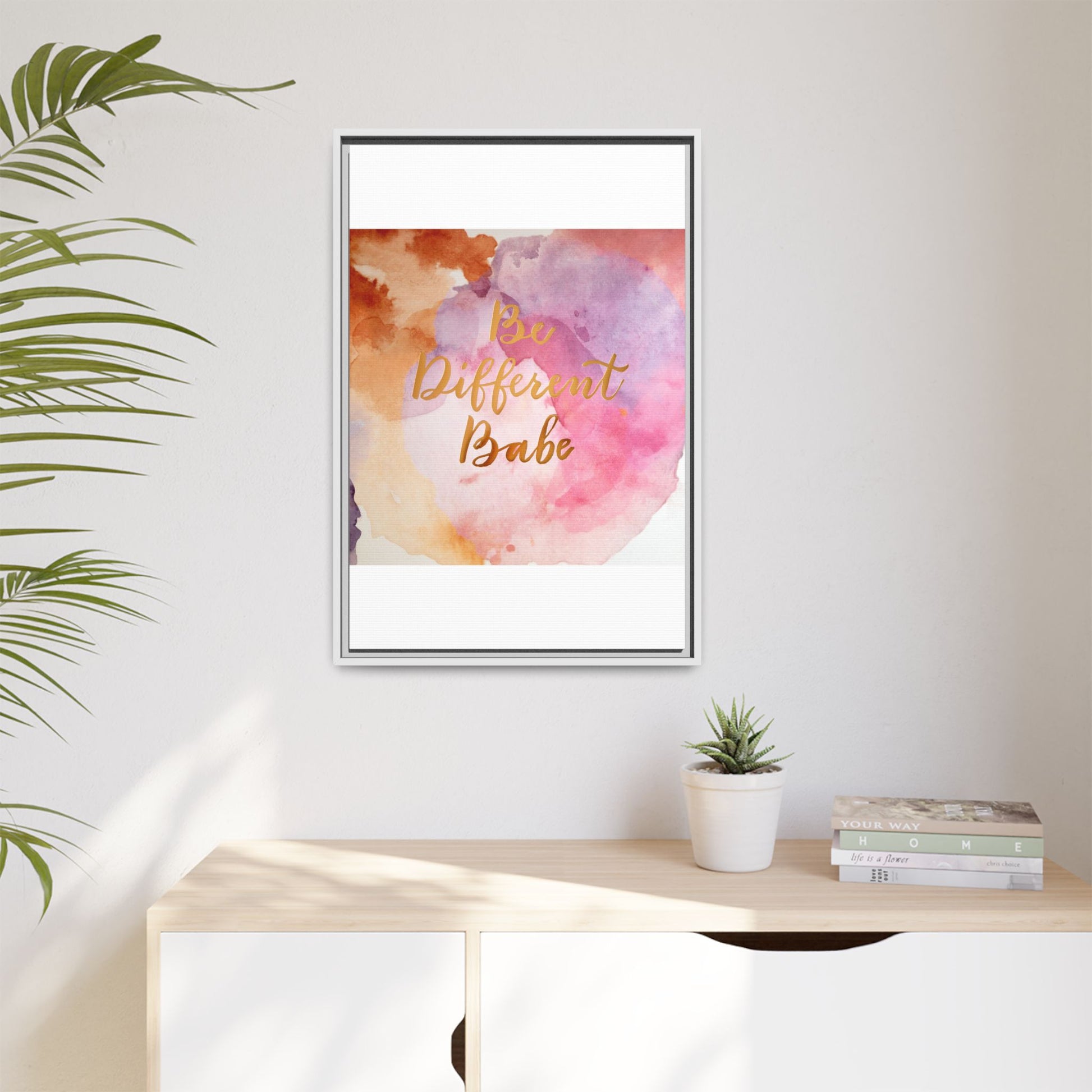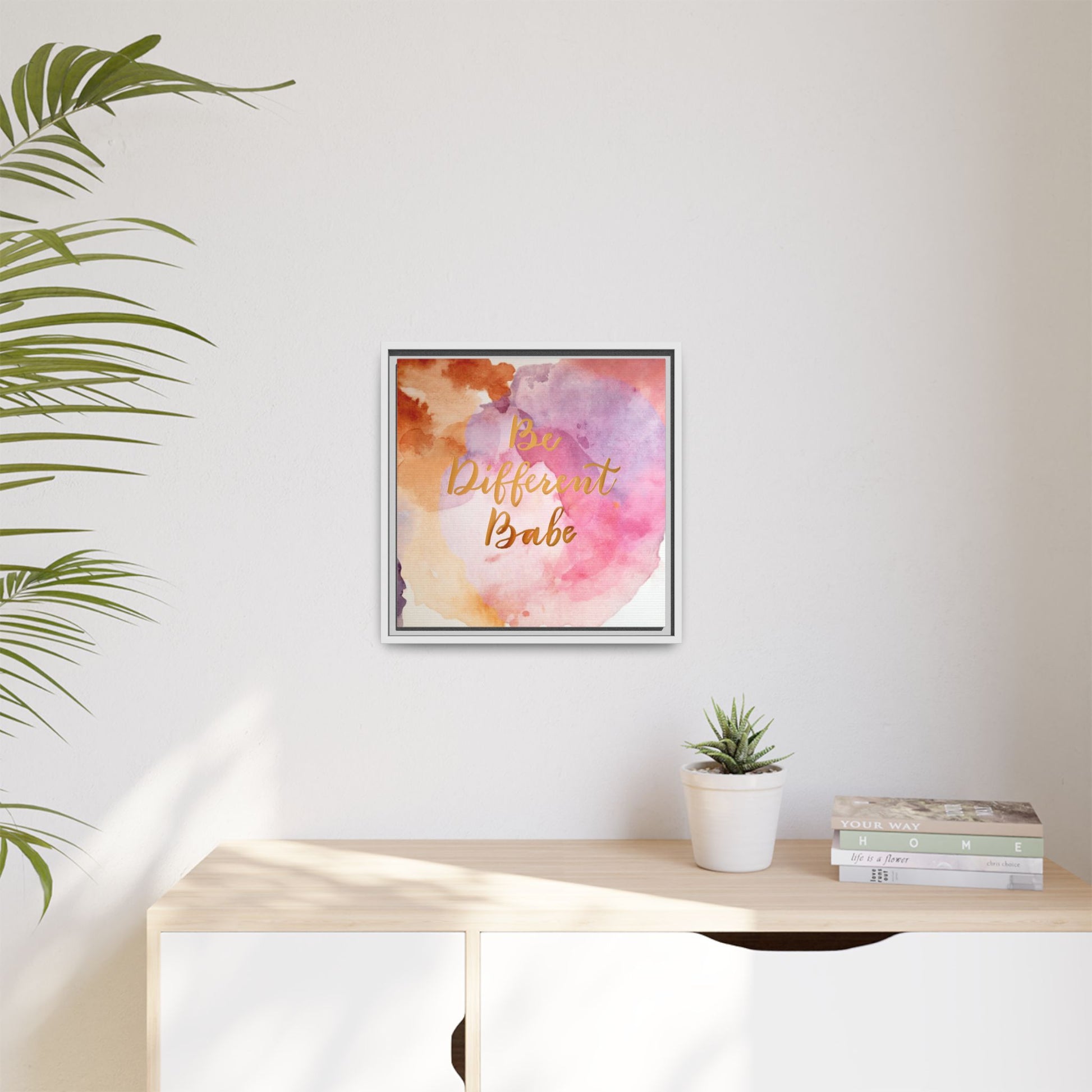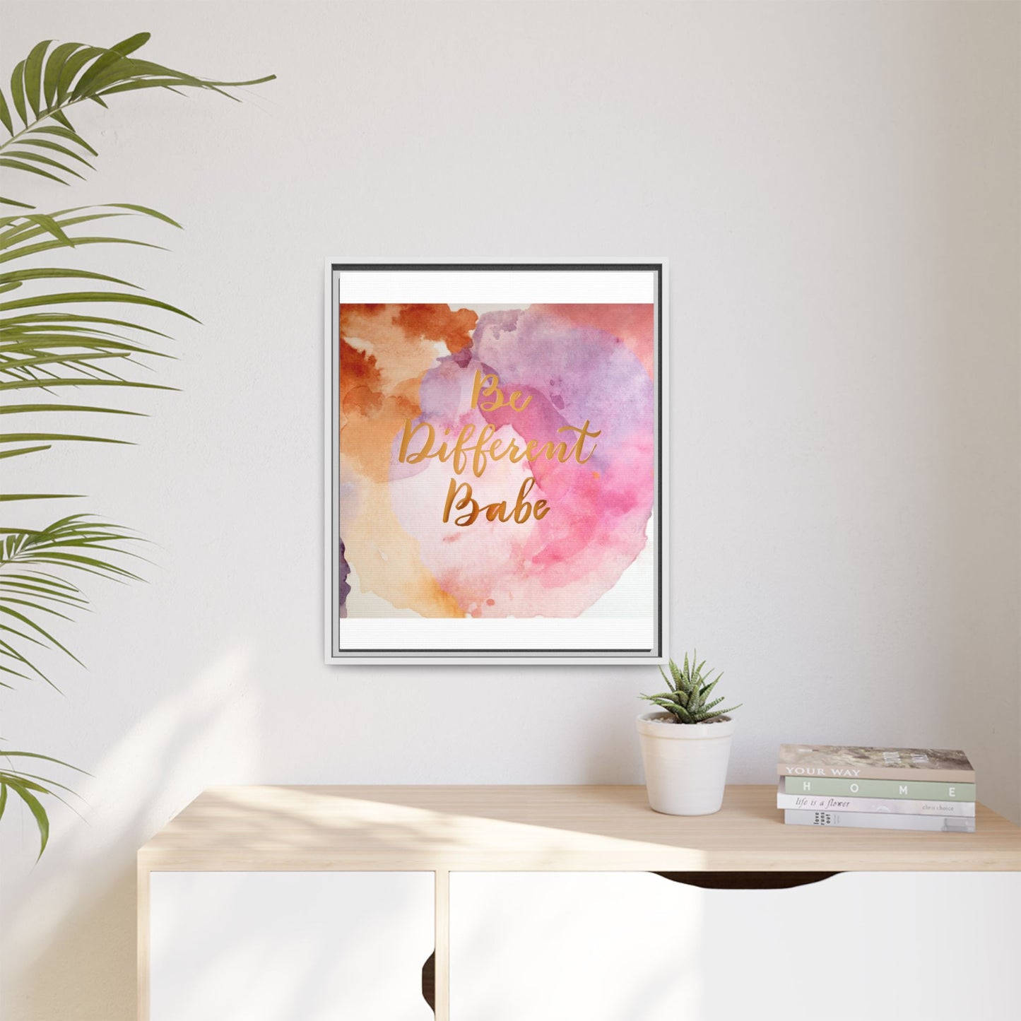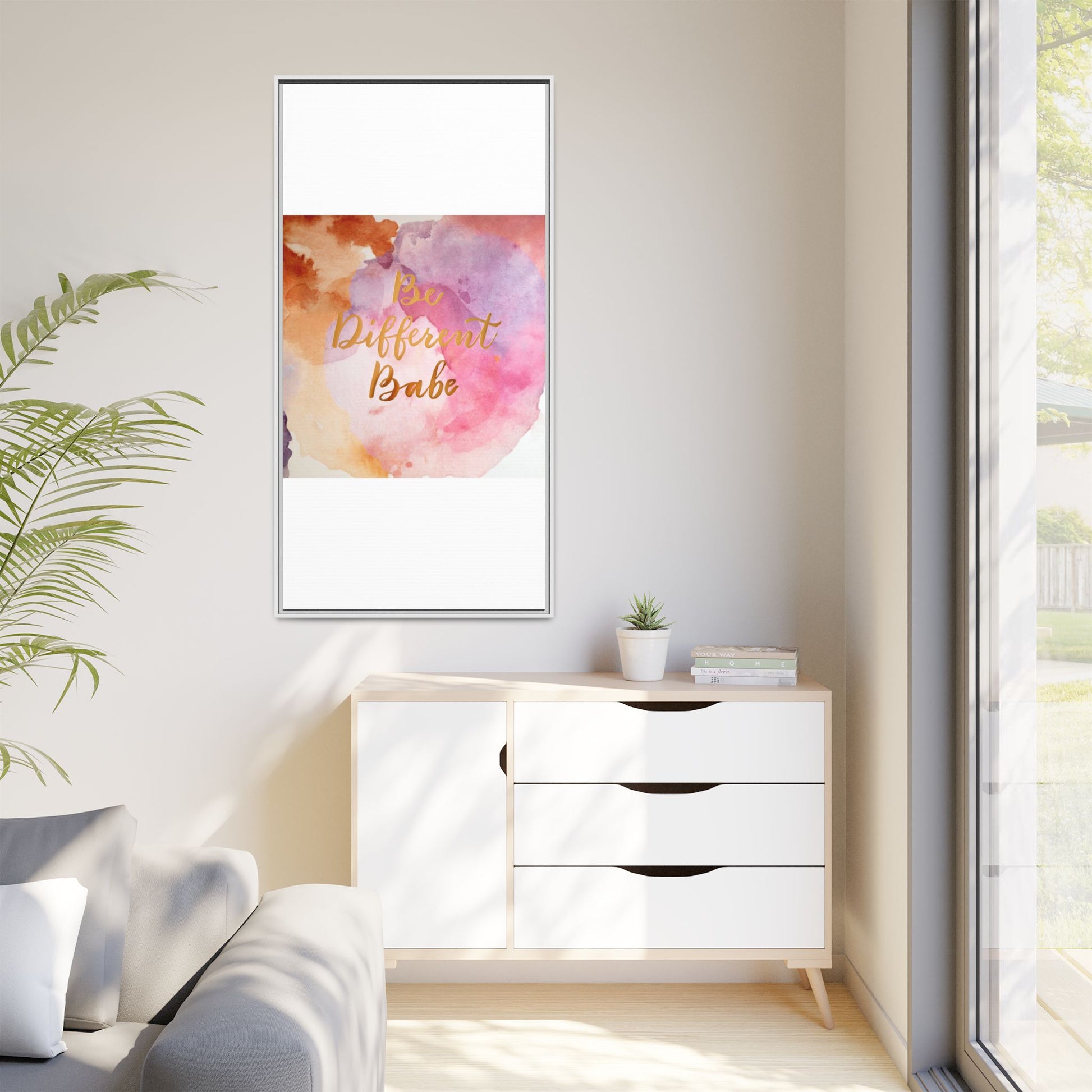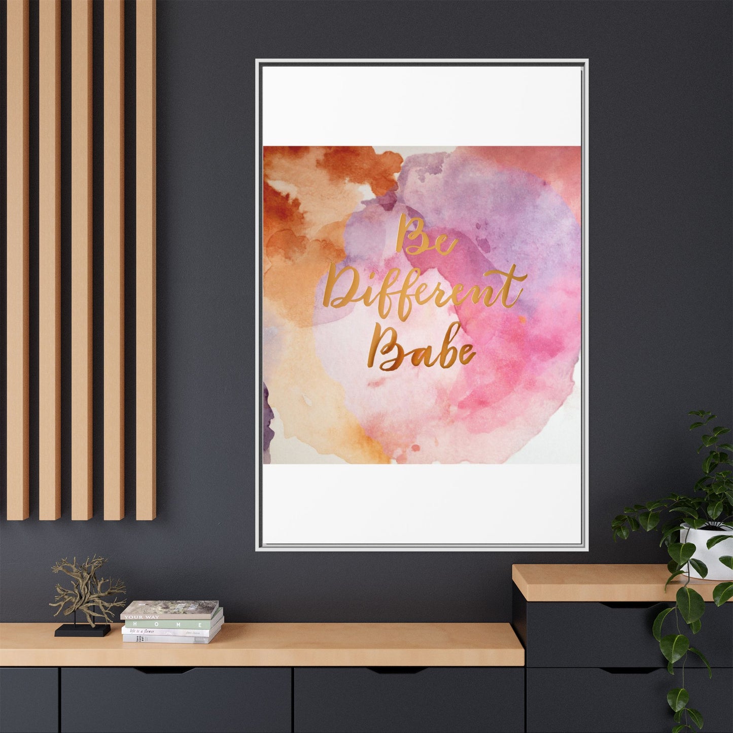 Framed Art Print - Be Different Babe, Inspirational Wall Decor, Unique Gift, Home Office Art, Colorful Canvas