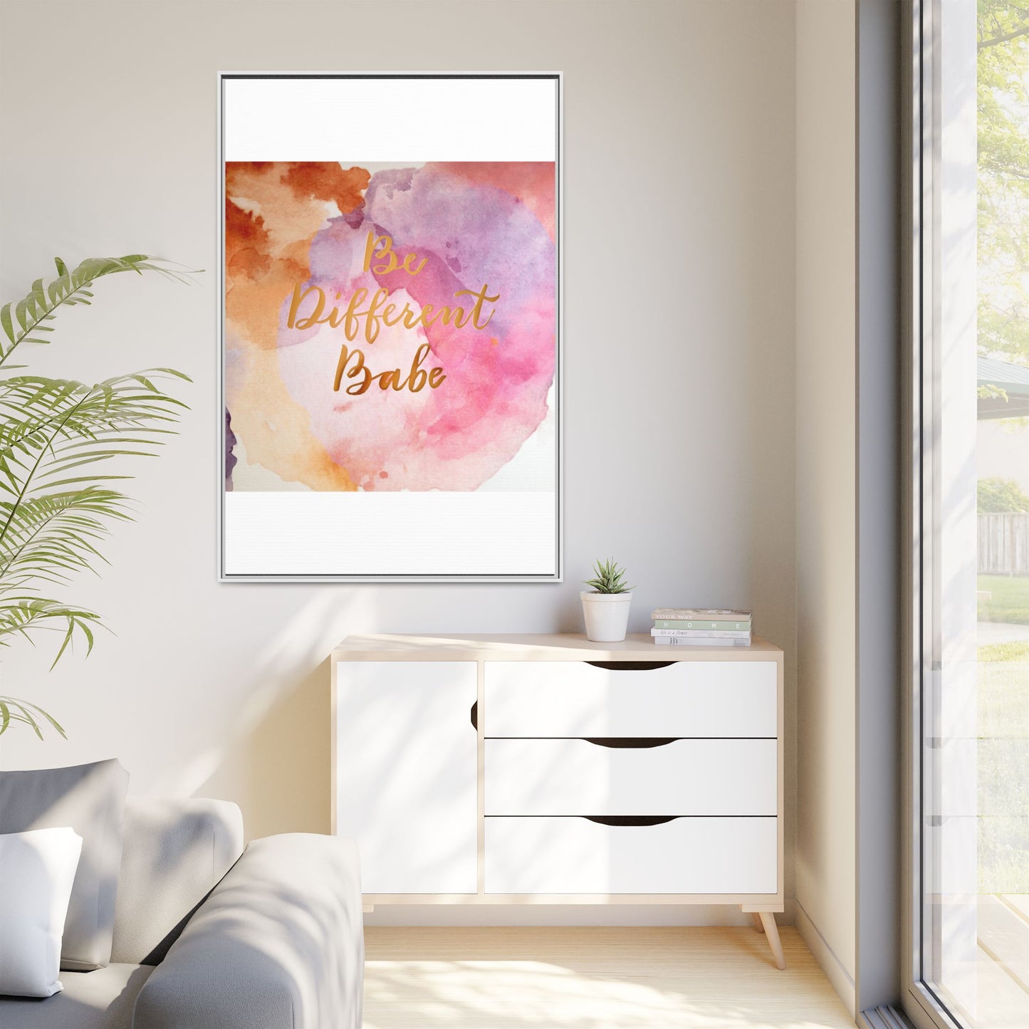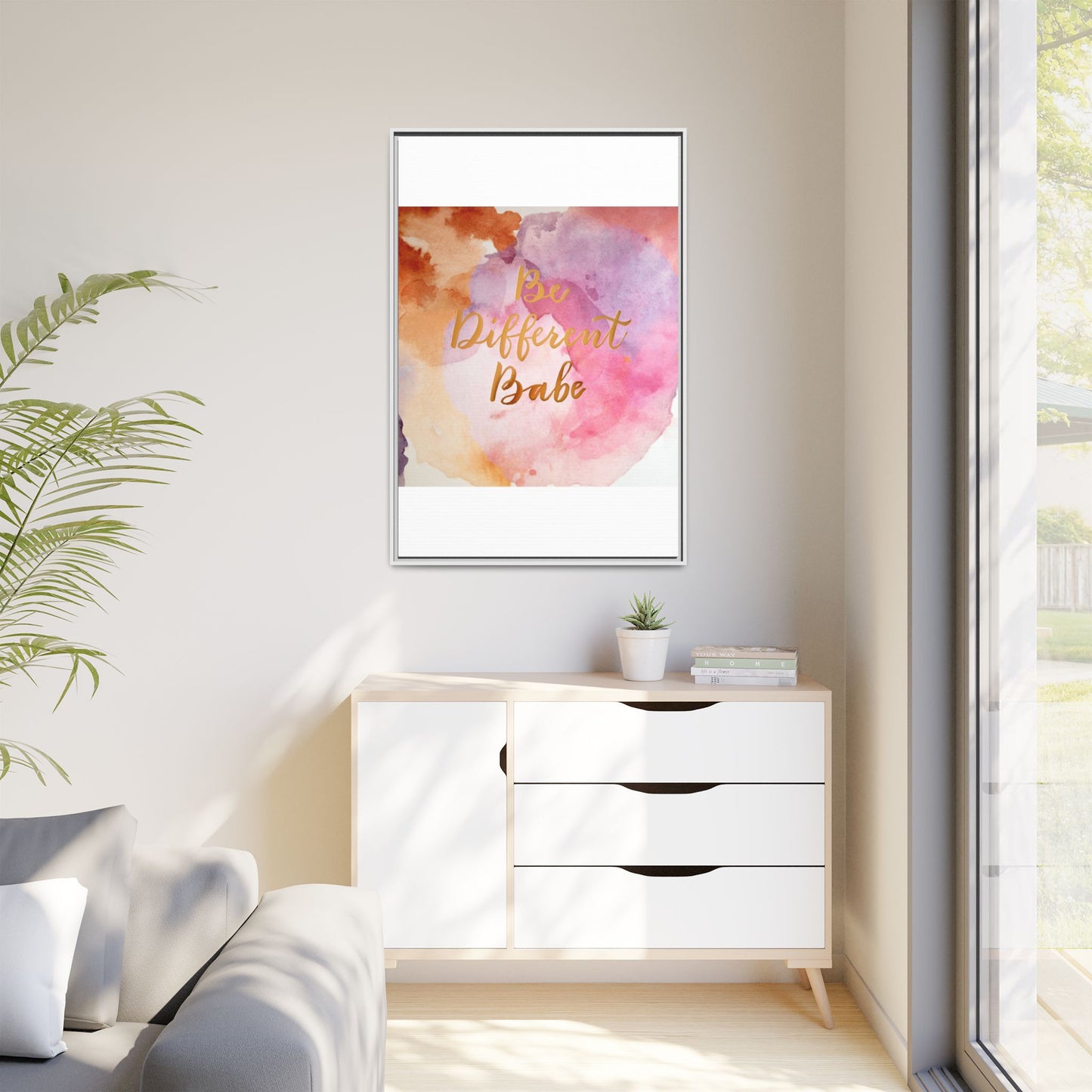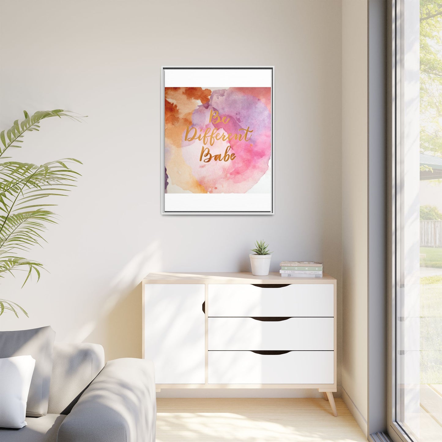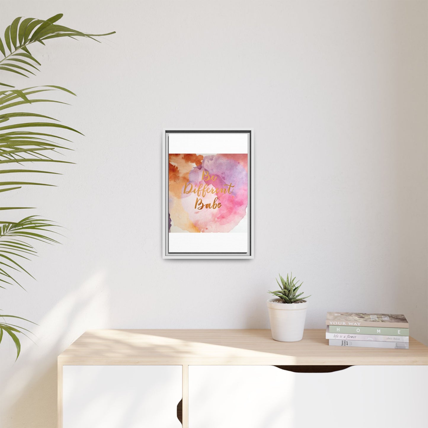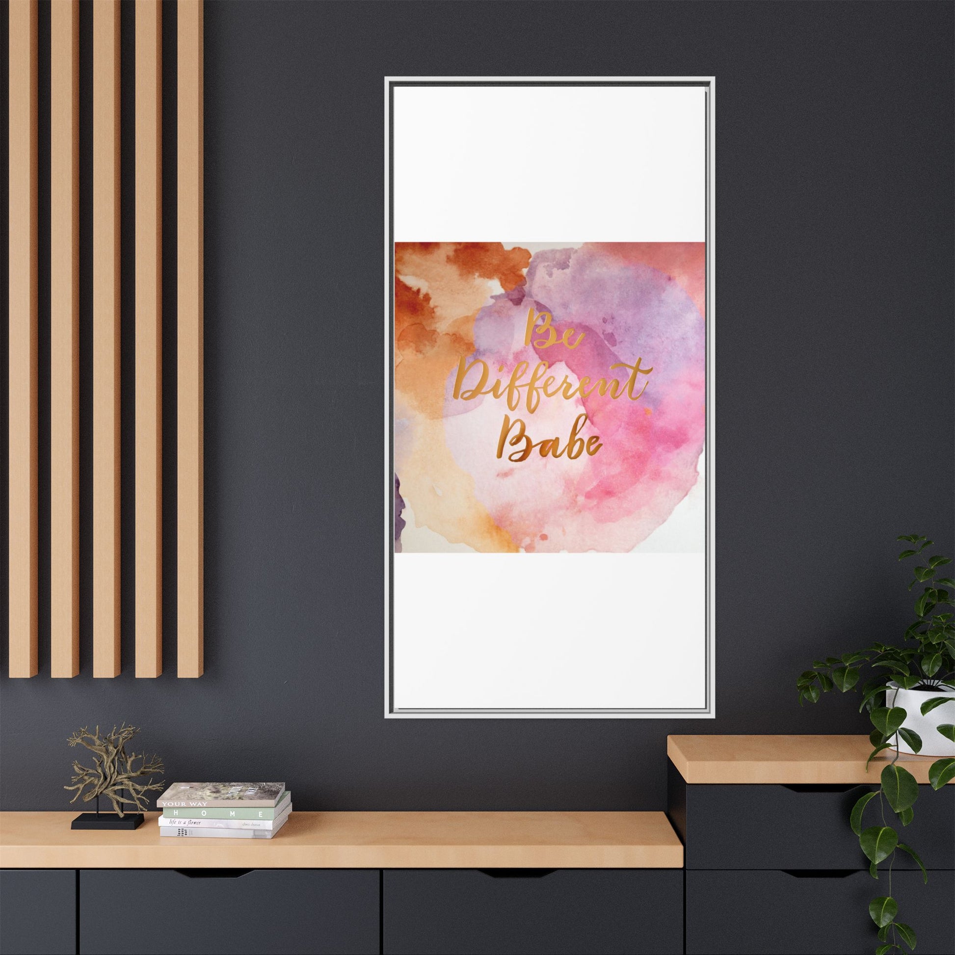 Framed Art Print - Be Different Babe, Inspirational Wall Decor, Unique Gift, Home Office Art, Colorful Canvas