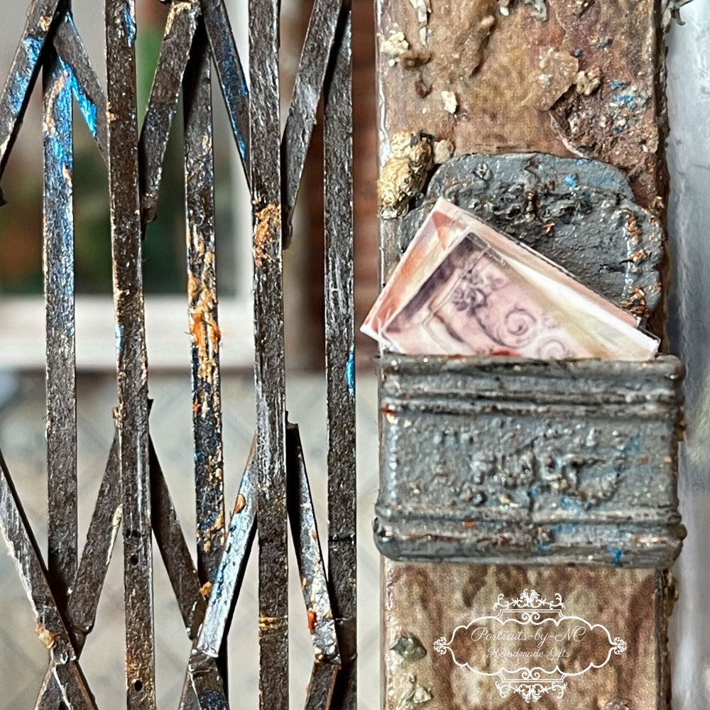 A beautiful little mailbox with 2 romantic-looking envelopes is the perfect accessory to dress up the outside of your dollhouse. This item measures 2.2 cm (.87 inches) wide and 2.8 cm (1.10 inches ) high and has a depth of 1.6cm (.63 inches).