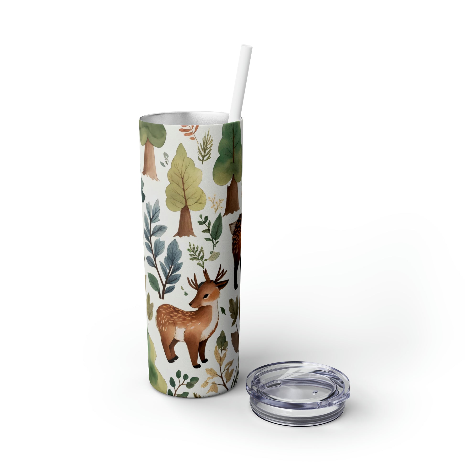 Skinny Tumbler with Straw, 20oz - Woodland Animals