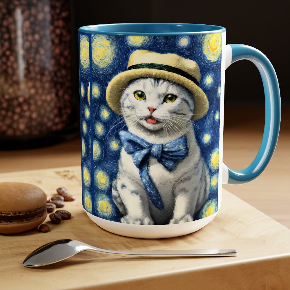 Starry Eye Cat Two-Tone Coffee Mugs, 15oz