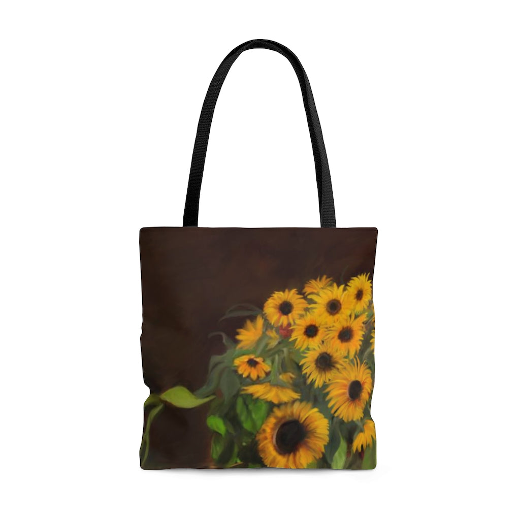 This tote bag is beautiful, unique, handy, and practical. The roomy bag is ideal for carrying books, groceries, or whatever else suits your fancy and helps save the environment by being reusable and easy to care for. This bag features different designs on the front and bag. Great bag for the fall season!